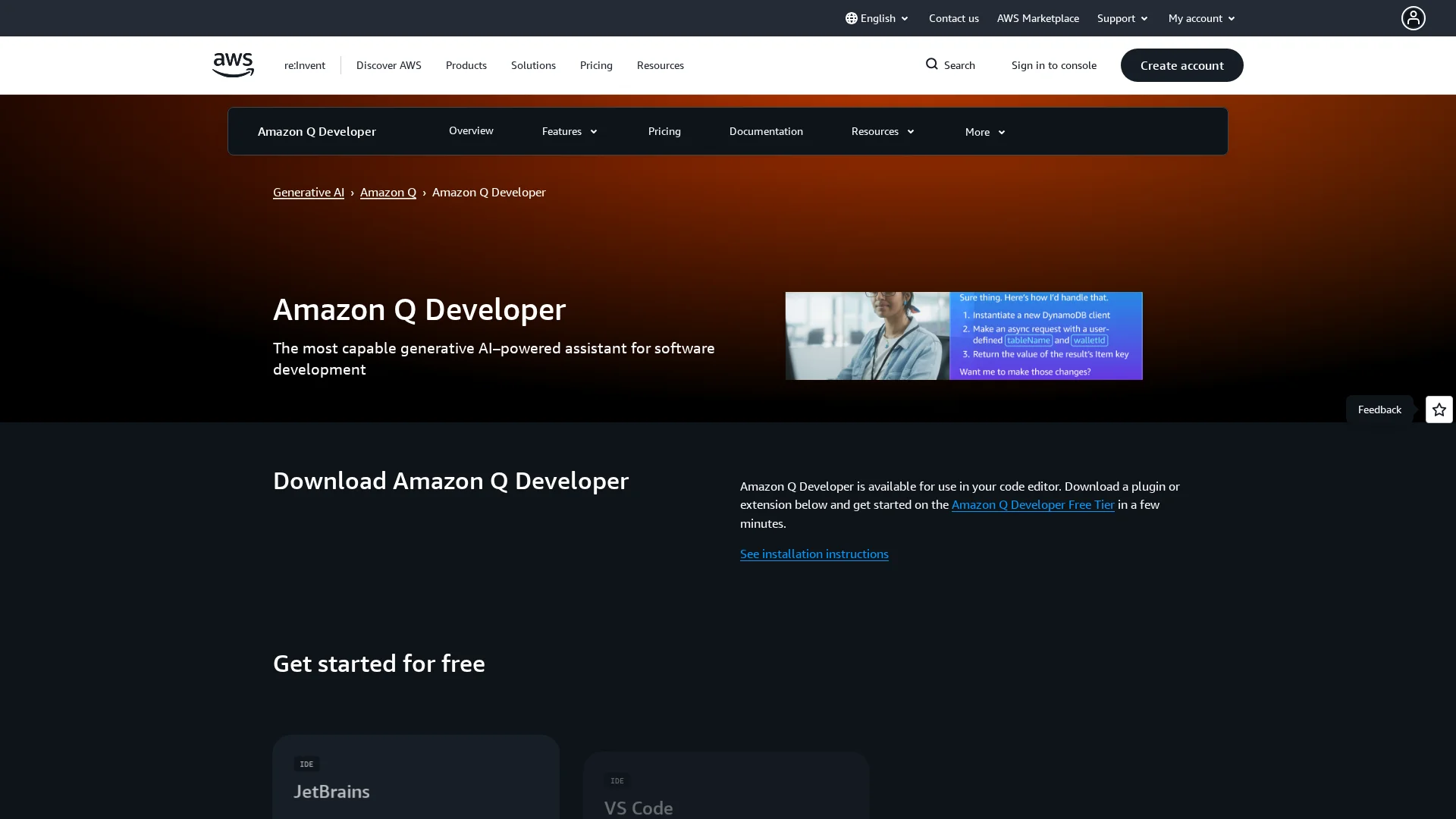 Amazon Q Developer is the most capable generative AI–powered assistant for building, operating, and transforming software, with advanced capabilities for managing data and AI/ML.