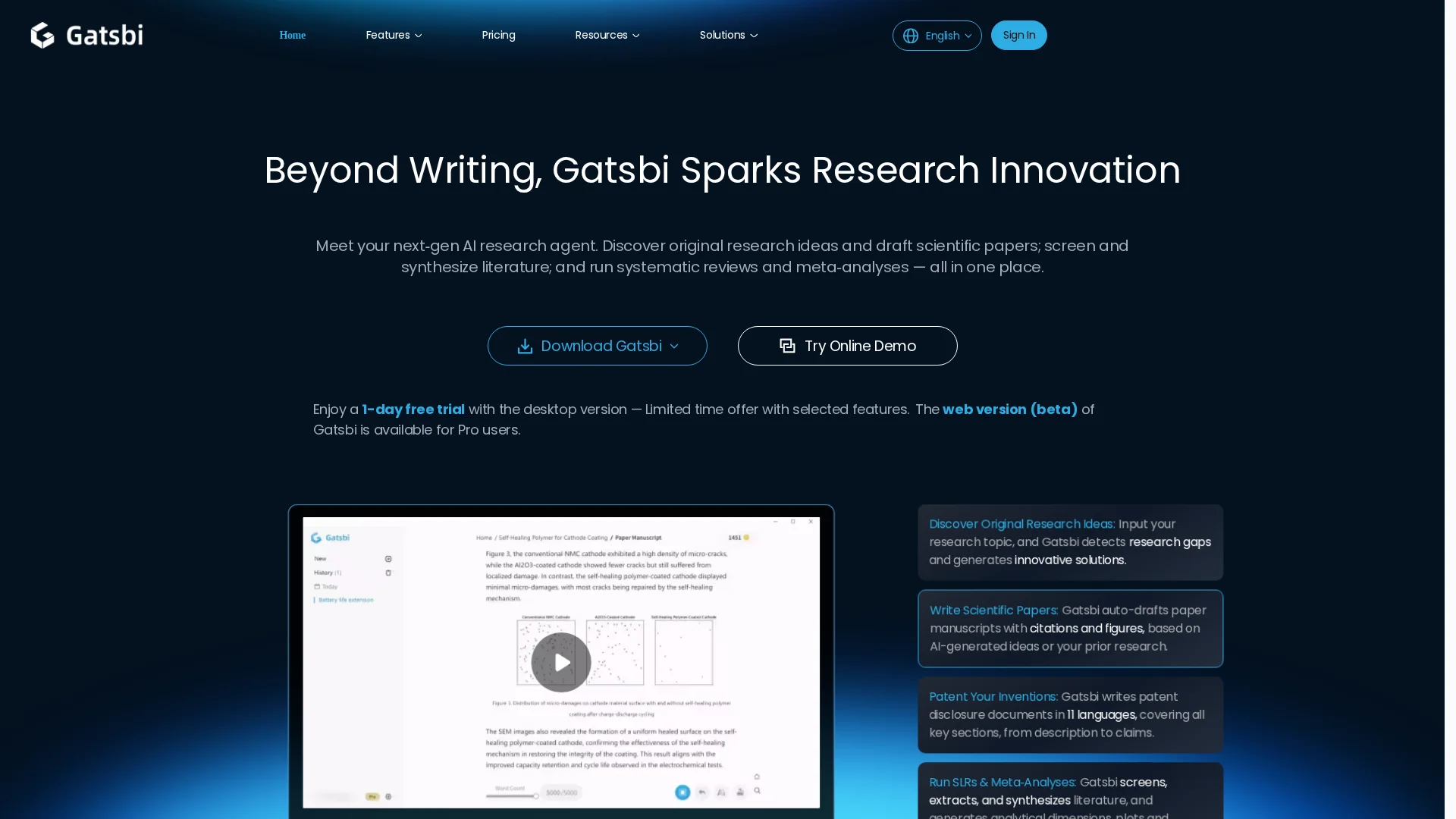 About Gatsbi Ai : Gatsby AI is an advanced research paper generator and AI research assistant. It generates research ideas, drafts scientific papers, and conducts systematic reviews and meta-analyses with accurate citations and visually clear content.
