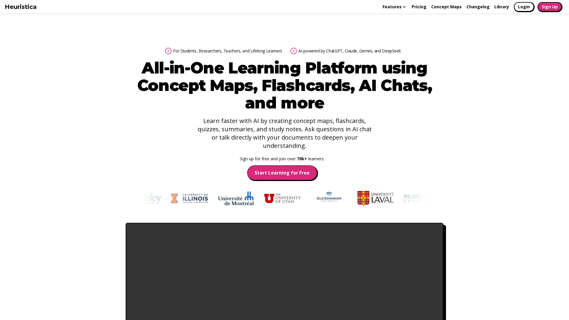 About Heuristica : Heuristica is an all-in-one learning platform utilizing concept maps, flashcards, AI chats, and more to accelerate learning. It enables users to create interactive study materials, summarize YouTube videos, and engage in AI-driven conversations.