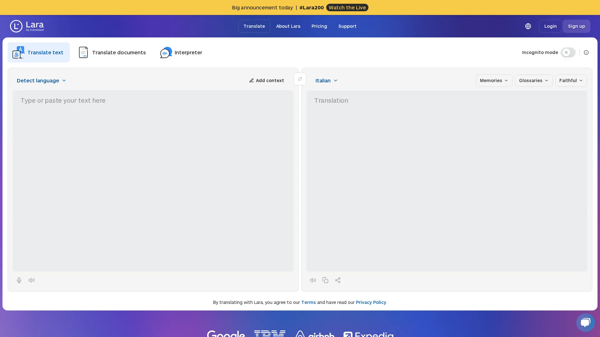 About Lara Translate : Lara Translate AI is a free, reliable, and fast translation tool that allows users to translate texts, conversations, and full document files instantly.