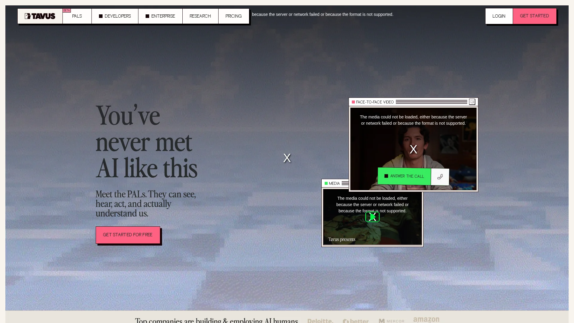 About Tavus : Tavus Tavus introduces PALs: AI humans that remember, empathize, and grow with you. They move fluidly between chat, voice, and video, making AI finally feel human.