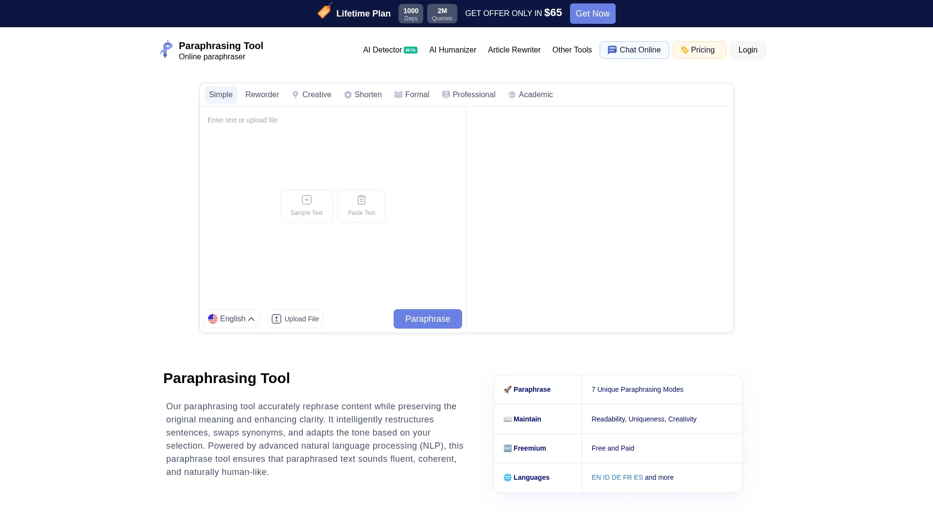 About Ai Paraphrasing Tool : Paraphrasing Tool is a free AI-powered assistant that enables users to rephrase text into their own words, suitable for essays, emails, sentences, and paragraphs.
