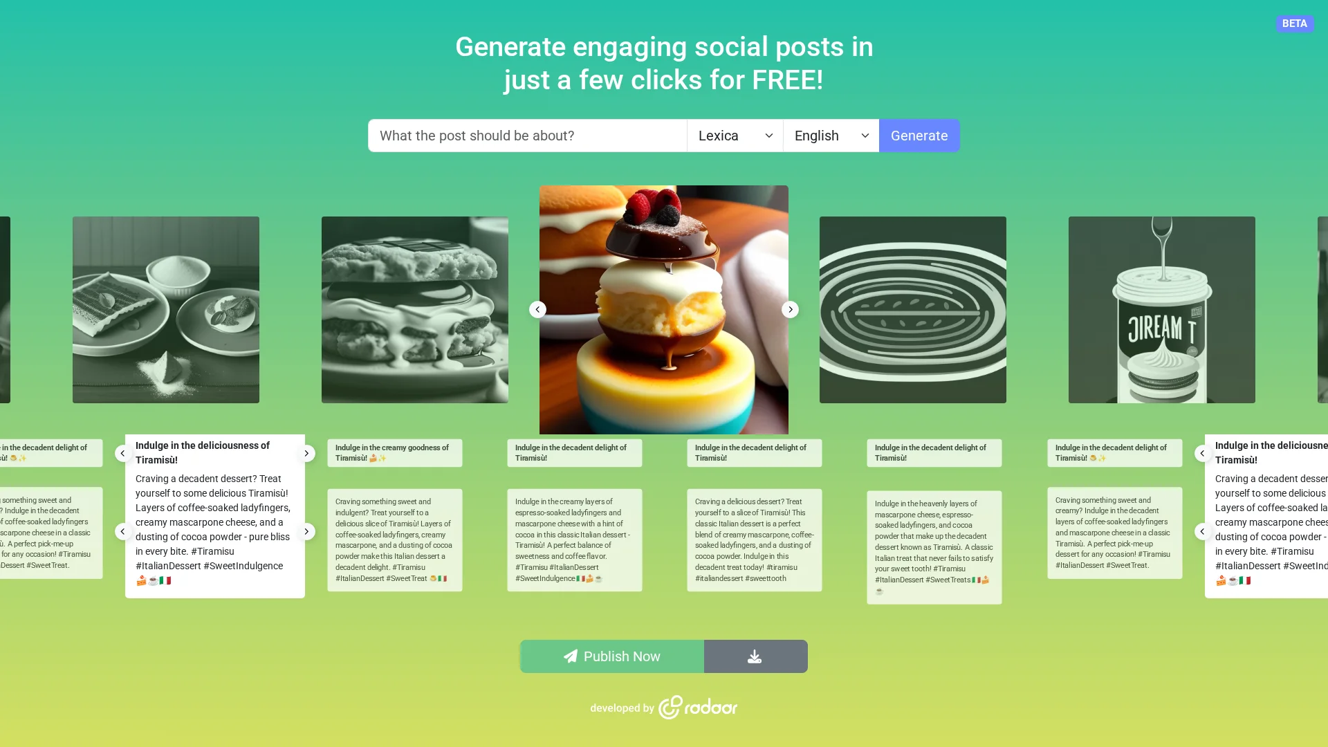 About Ai Post Generator : The RADAAR Social Media Post Generator helps you quickly create engaging social media posts using AI.