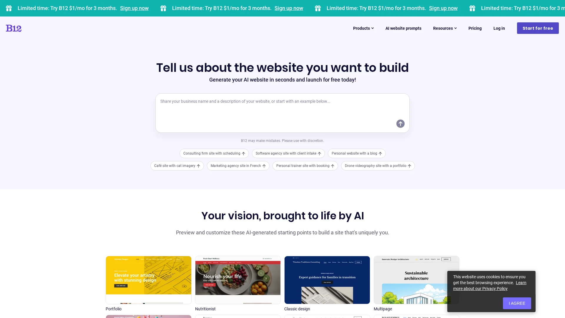 Build a professional website instantly with B12 AI website builder. Launch for free and gain powerful tools designed to grow your business online.