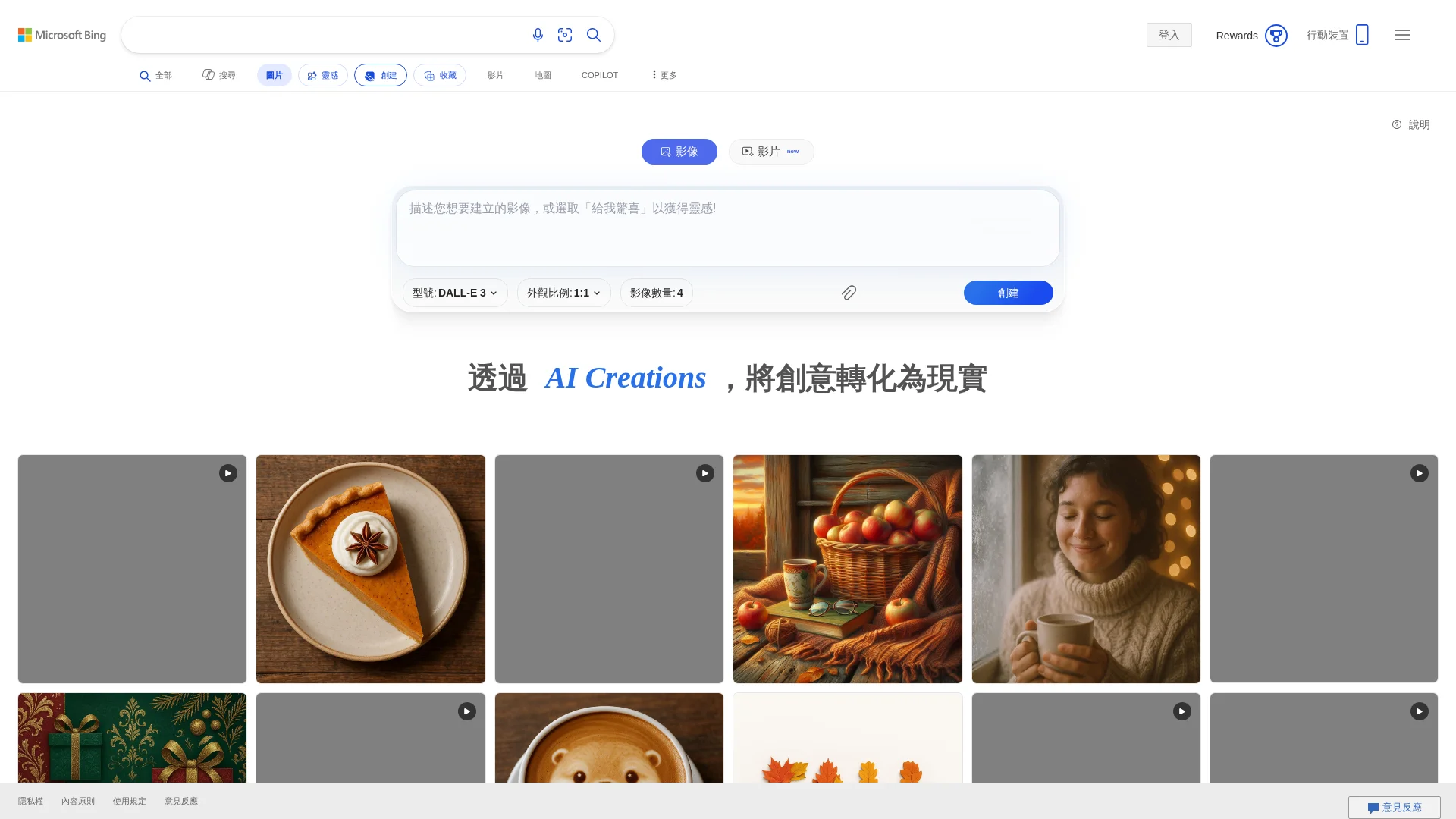 Free, AI-powered Bing Image Creator and Bing Video Creator turn your words into stunning visuals and engaging videos in seconds. Generate images and videos quickly and easily, powered by DALL-E and Sora.
