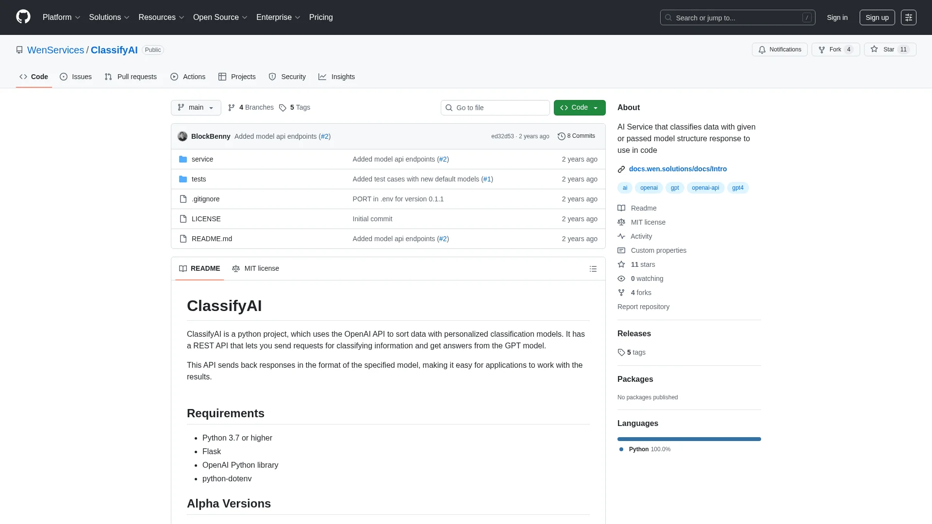 AI Service that classifies data with given or passed model structure response to use in code - WenServices/ClassifyAI