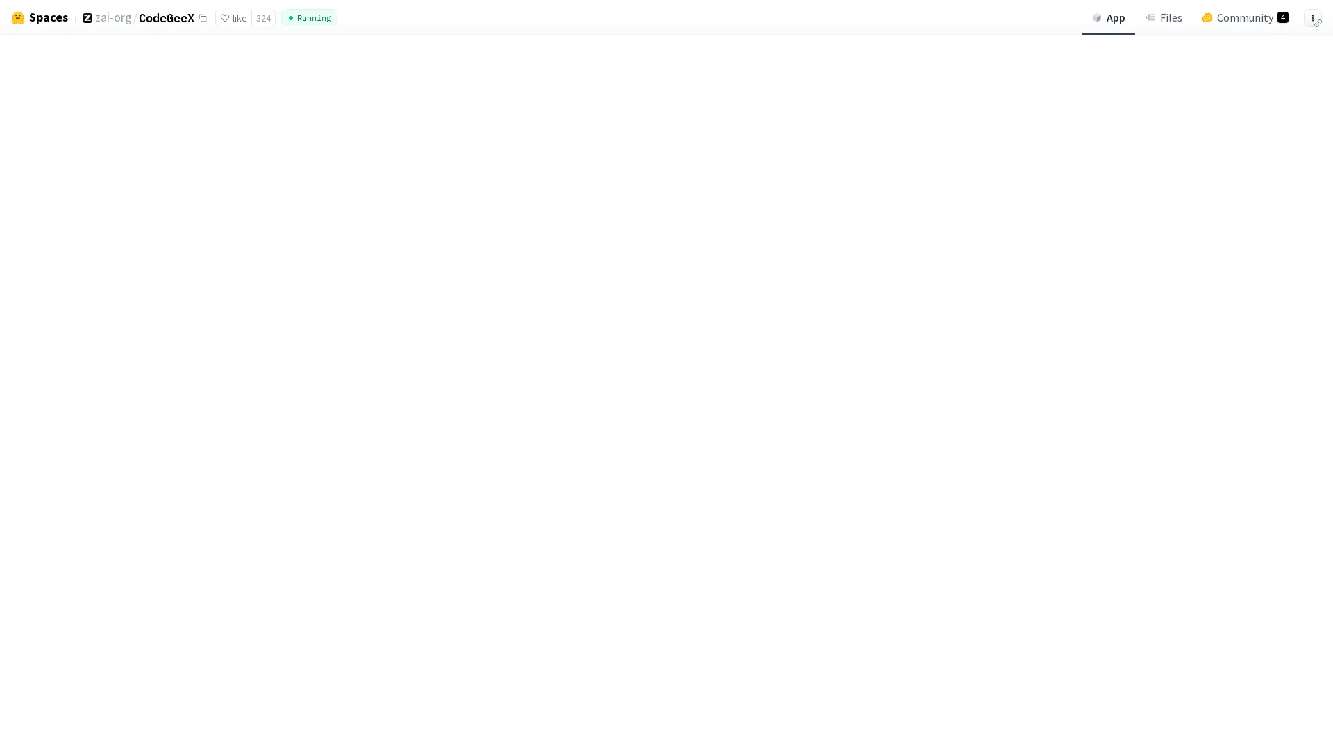 About Codegeex Ai : CodeGeeX is a Hugging Face Space that provides instant coding assistance for developers. It allows users to ask programming questions and receive accurate, executable code with detailed explanations.benefits: Streamline your coding workflow with accurate and efficient code assistance.goal: Empowering developers with instant coding solutions.