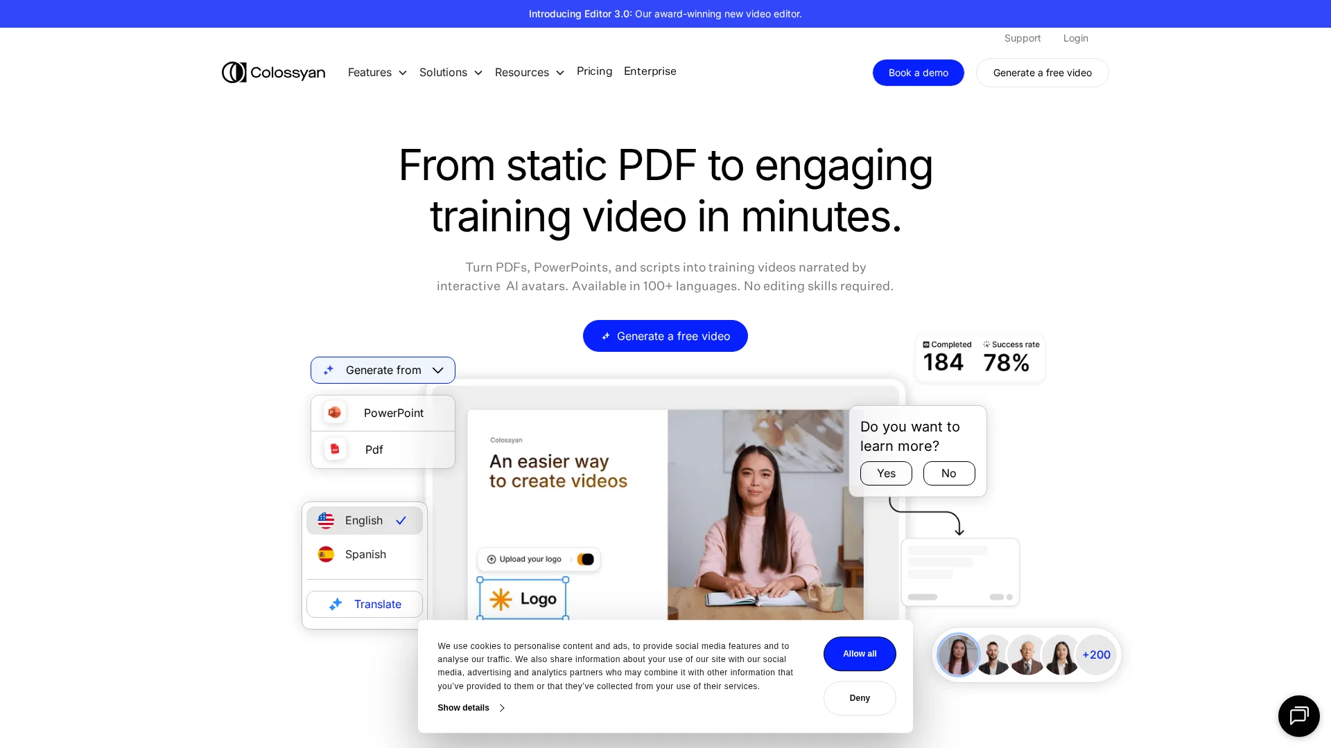 About Colossyan : Colossyan Creator simplifies video creation, leveraging AI to generate high-quality videos with real actors in under 5 minutes.
