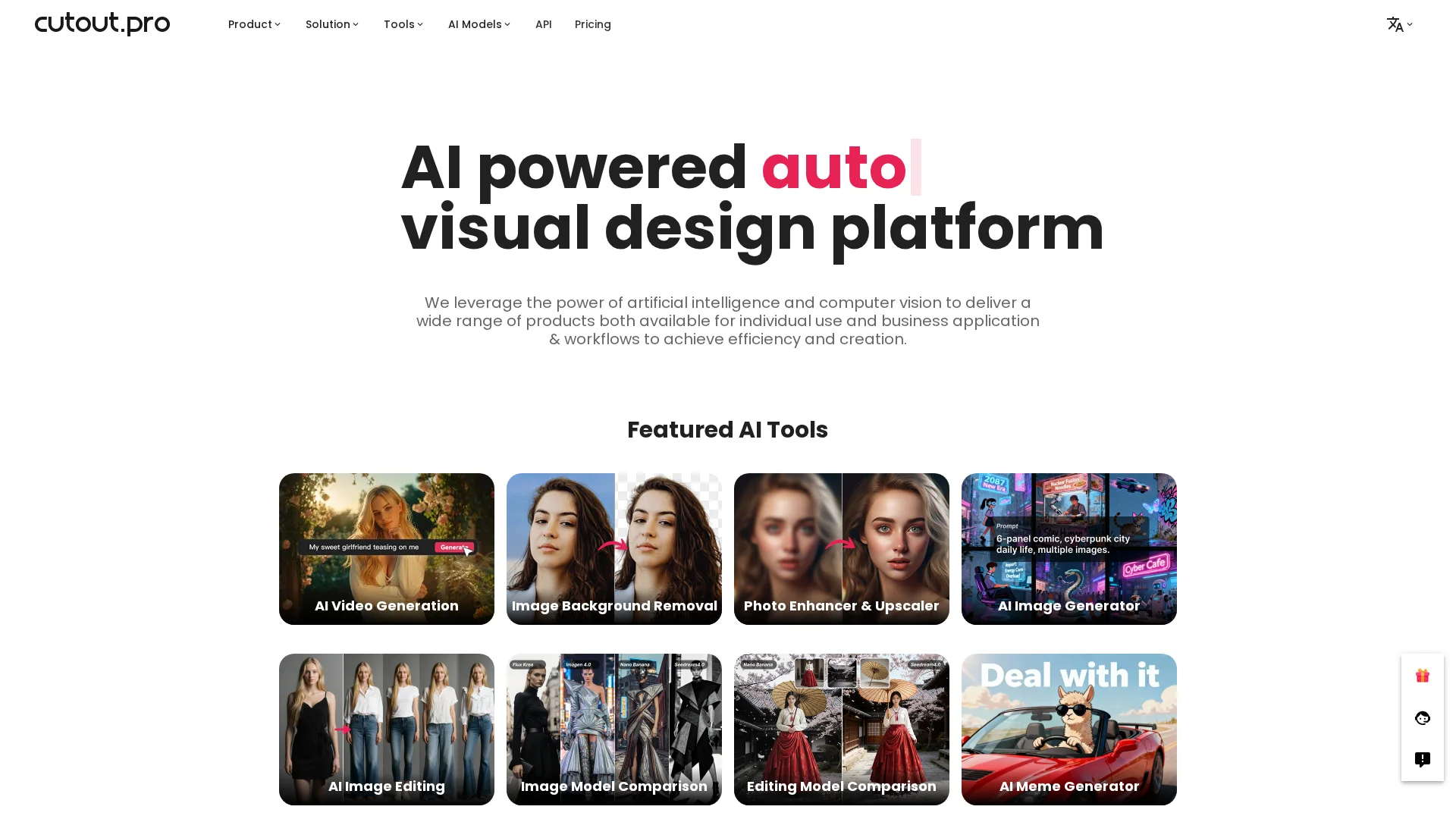 About Cutout Pro : Cutout Pro is an AI-powered visual content generation platform for image and video design.