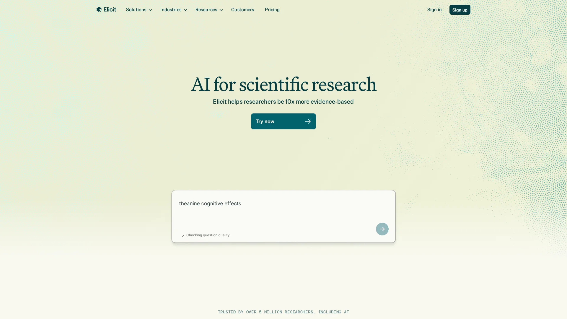 About Elicit : Discover insights from 125 million papers with Elicit AI, relied upon by 2 million researchers. Elicit empowers data extraction, summarization, search, and chat-based knowledge management.founders: []history: []logo: mission: team: []