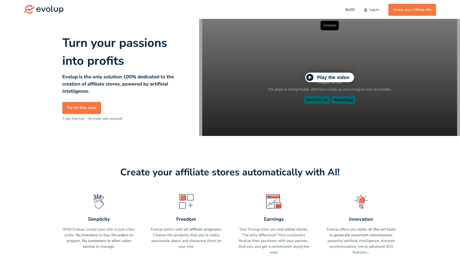 Monetize your niche expertise with Evolup's comprehensive AI-driven affiliate store features.