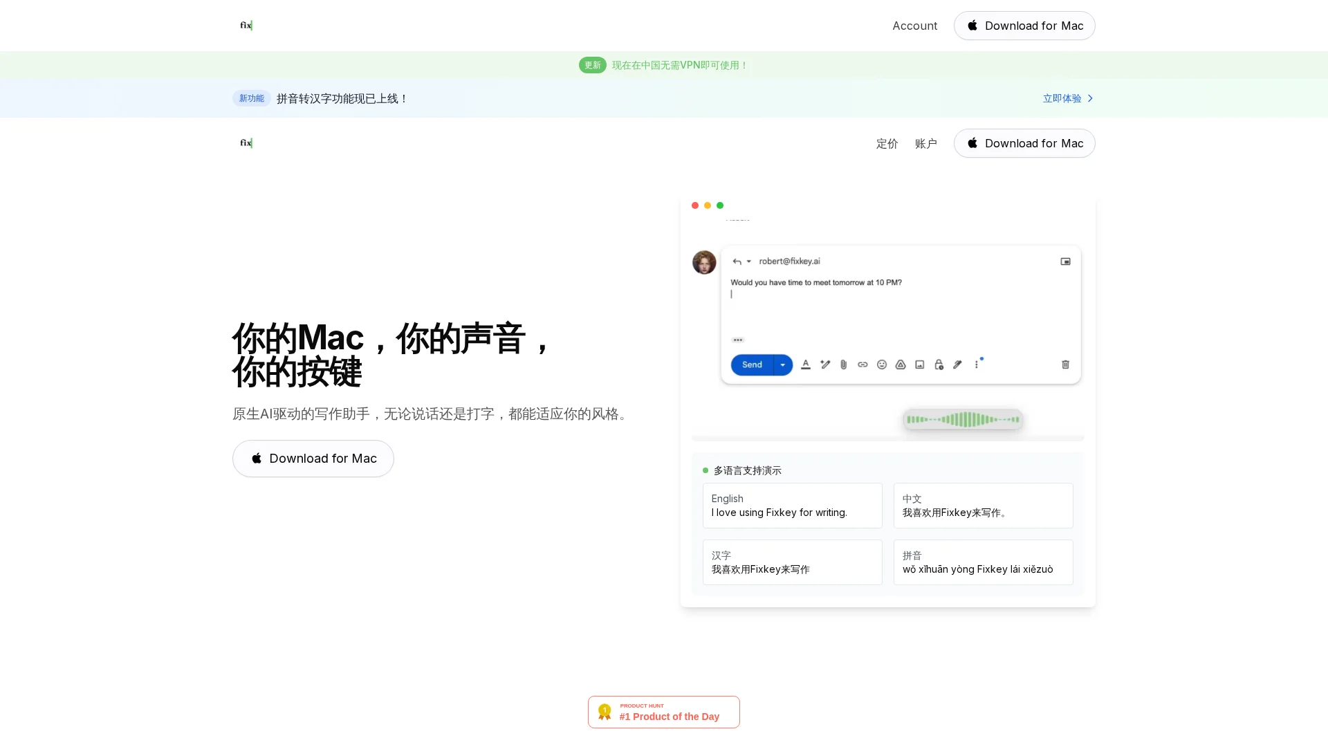 About Fixkey Ai : Fixkey is a native AI-powered writing assistant for Mac that adapts to your writing style, helping you create high-quality content with ease.