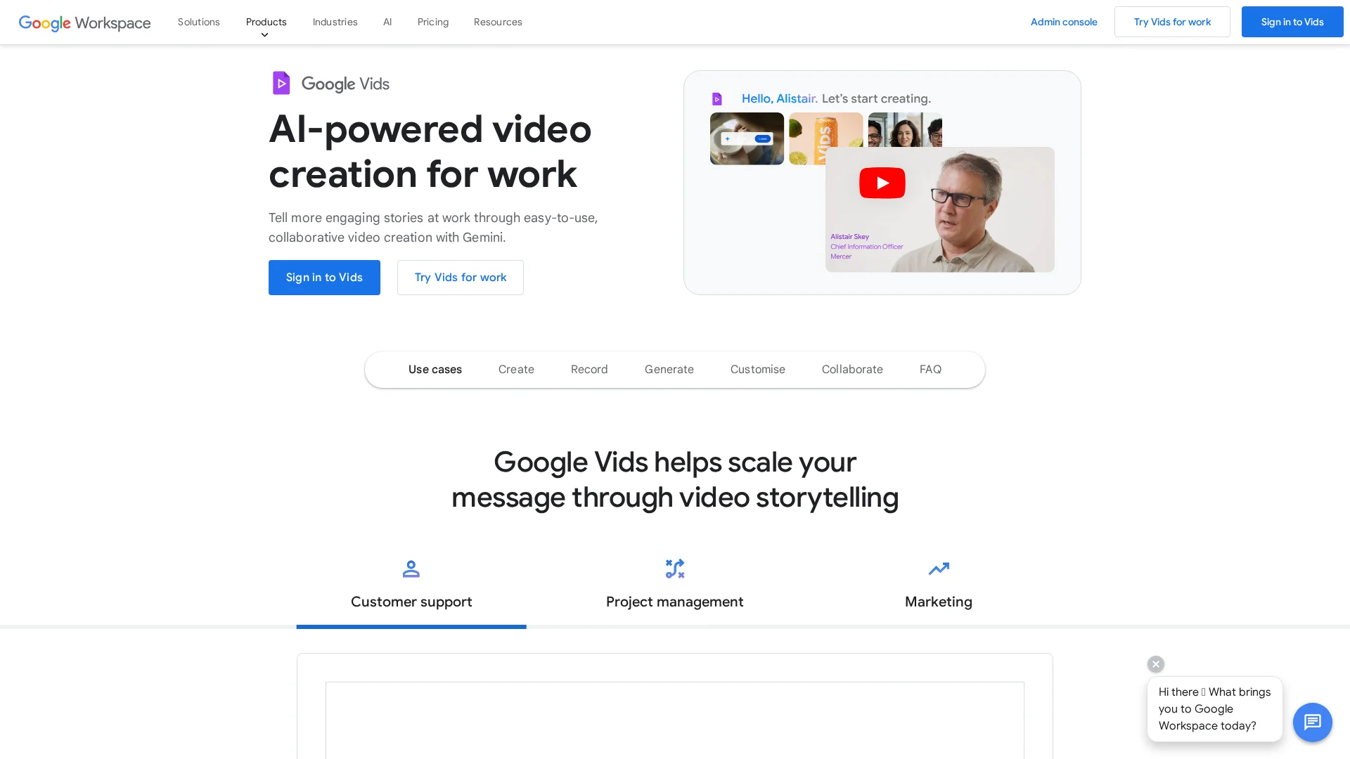 About Google Vids : Create, edit, and share rich video content with Google Vids' AI-powered video creator and editor.