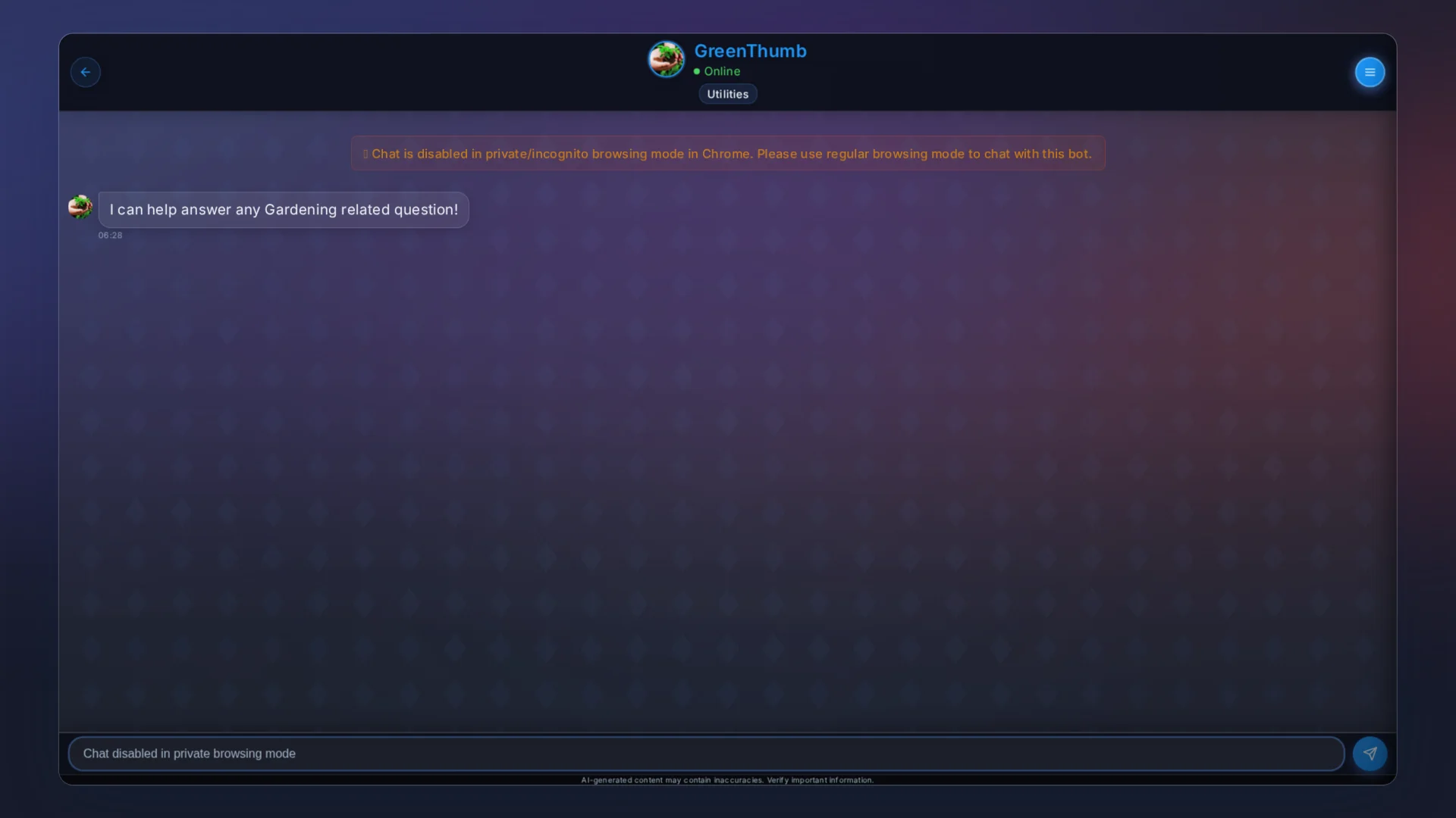 About Greenthumb : A gardening expert is just a conversation away with GreenThumb. Get answers to your gardening-related questions and take your green thumb to the next level.