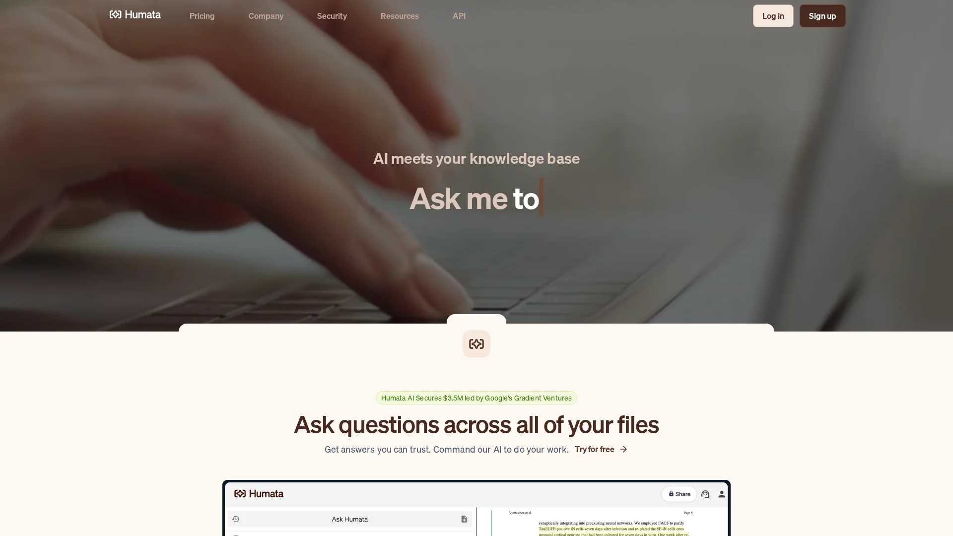 About Humata Ai : Meet Humata, the AI-powered knowledge base that transforms your documents into intelligent insights, ready for instant analysis and answers.