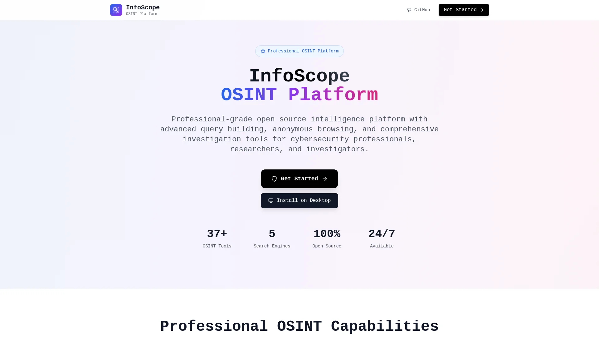 About Infoscope : Infoscope OSINT v2.3.0 is a professional open source intelligence platform with 48+ advanced tools for subscription-based OSINT gathering, export, and analysis.
