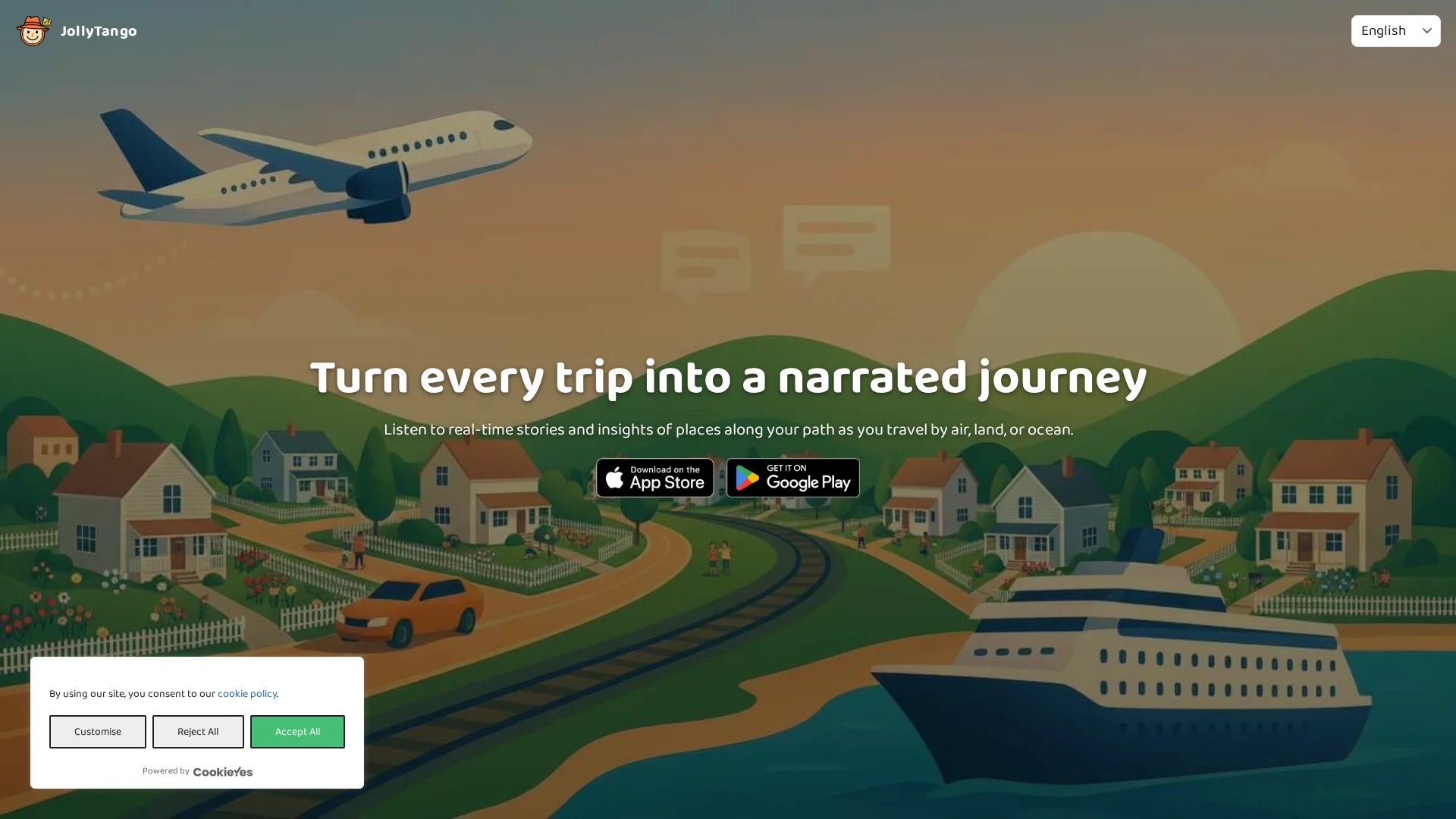 Transform every trip into a narrated journey with JollyTango. Listen to real-time stories and insights about places along your path as you travel by air, land, or ocean.