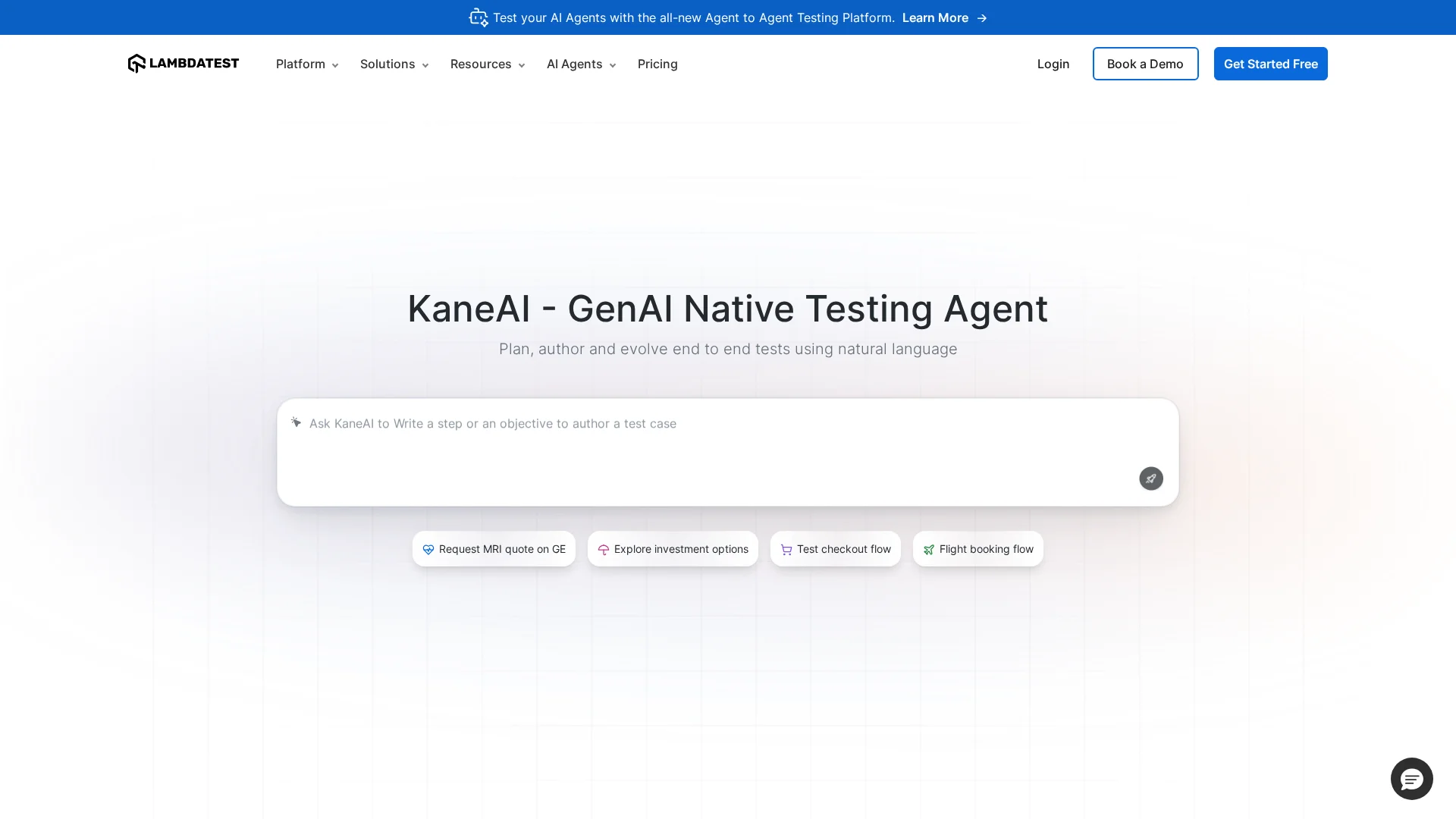 KaneAI is a GenAI-Native testing agent for high speed Quality Engineering teams. Allowing them to plan, author, and evolve tests using natural language. Try now!