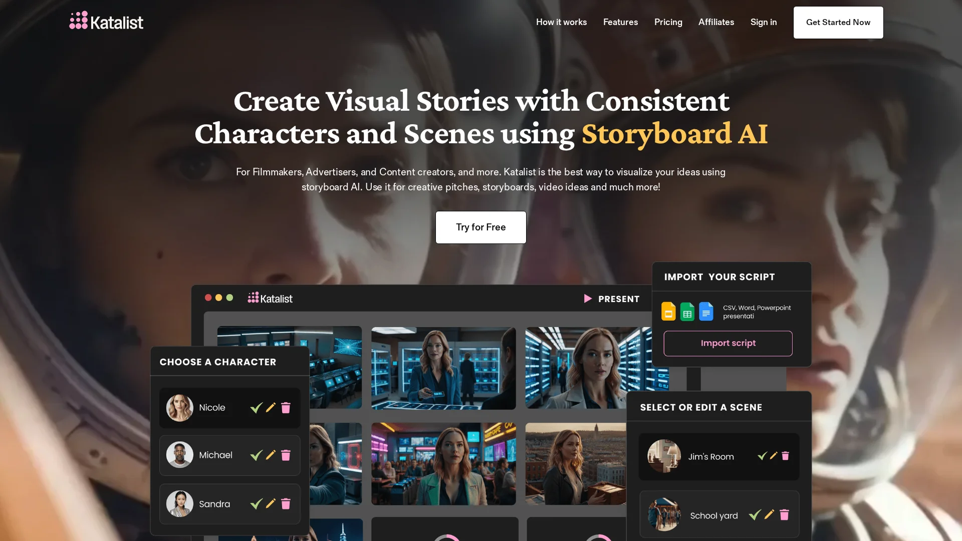 About Katalist : Transform your ideas into visual stories with Katalist, a storyboard AI tool for filmmakers, advertisers, and creators.