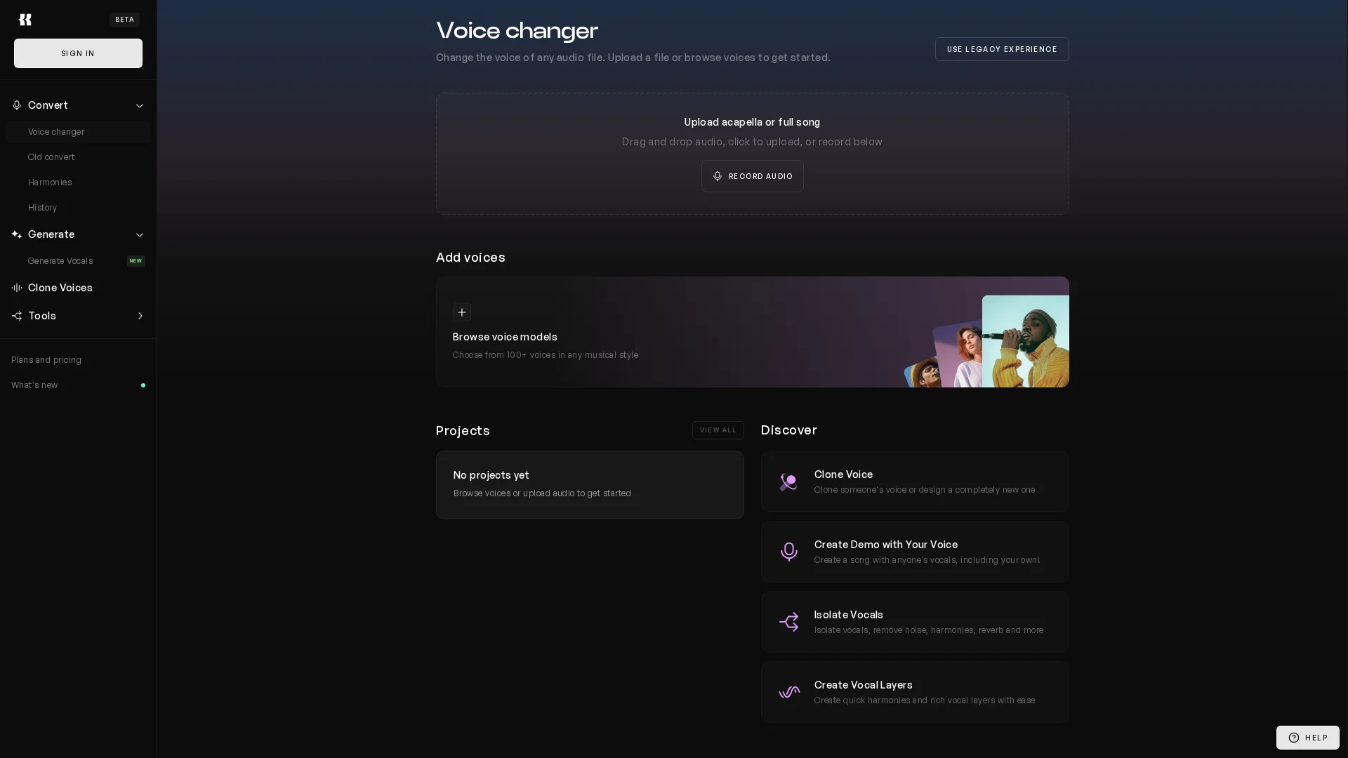 Change your voice into any other voice with the Kits AI Voice Studio. Upload your audio and edit your voice in our in-browser workflow, choosing from a variety of royalty-free artist or instrument AI voice generators.