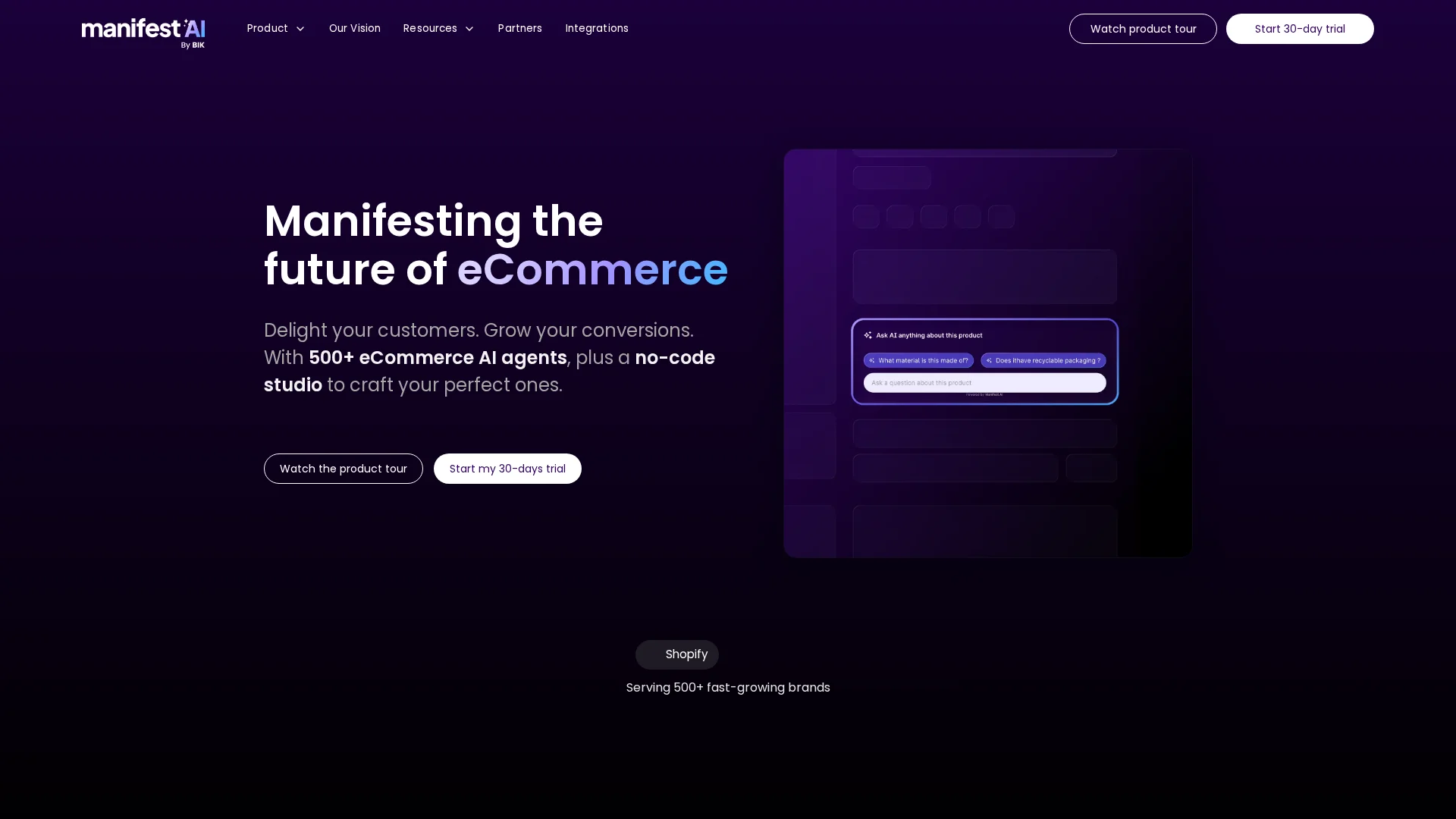 About Manifest Ai : Manifest AI is a shopping assistant for eCommerce brands that enables consumers to buy faster. It's trusted by over 2500 enterprise brands.