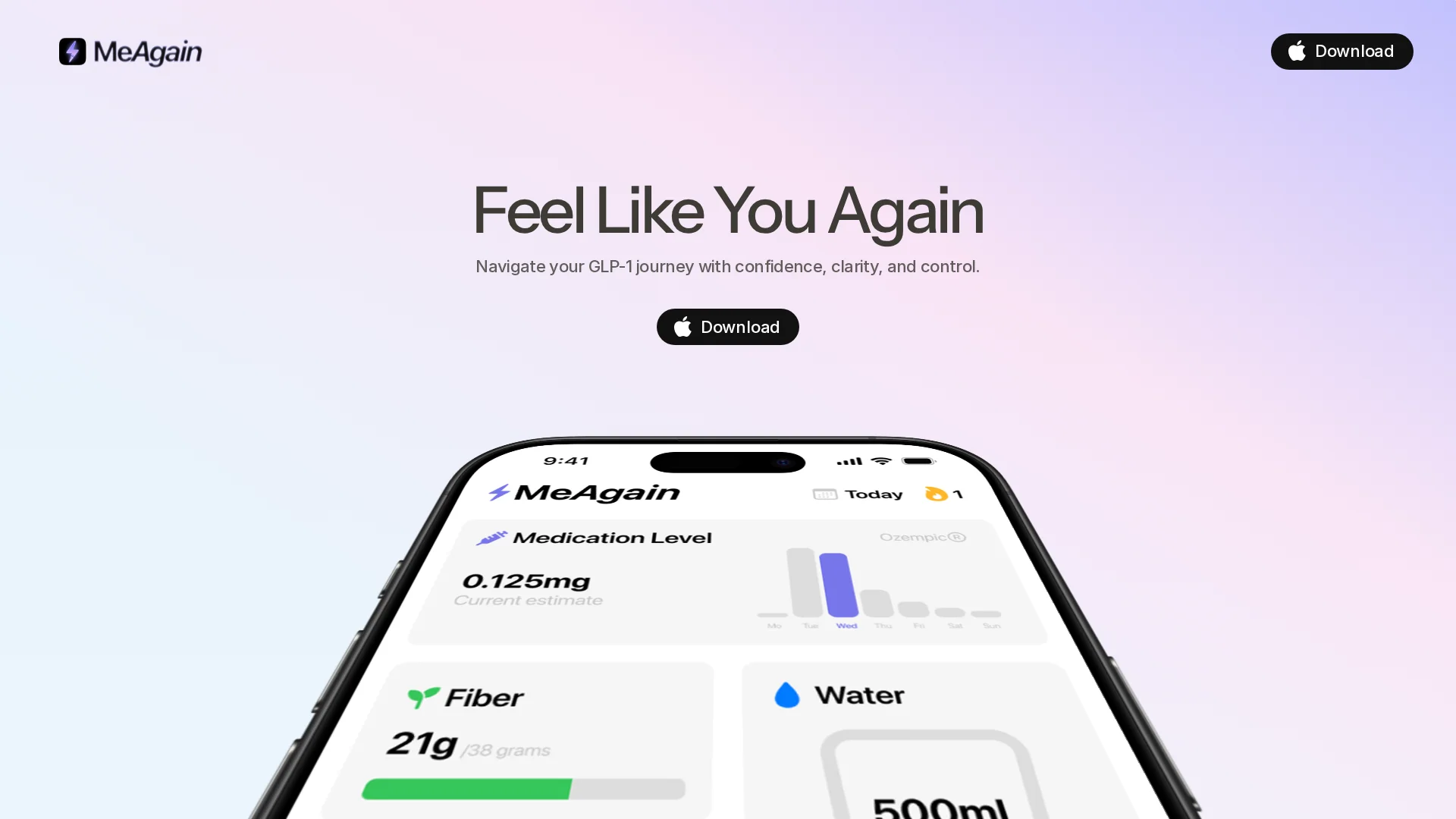 About Meagain : MeAgain is an all-in-one app for GLP-1 tracking and support. Rediscover yourself with personalized guidance to reclaim your health and confidence.