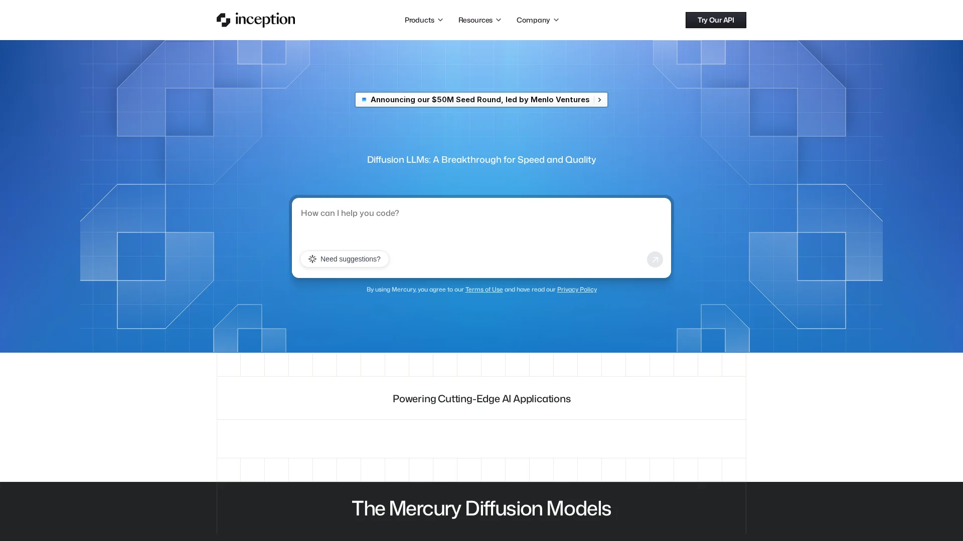 About Mercury By Inception Labs : Mercury by Inception Labs is leveraging diffusion technology to develop a new generation of LLMs, offering improved performance and efficiency in content generation and analysis tasks.