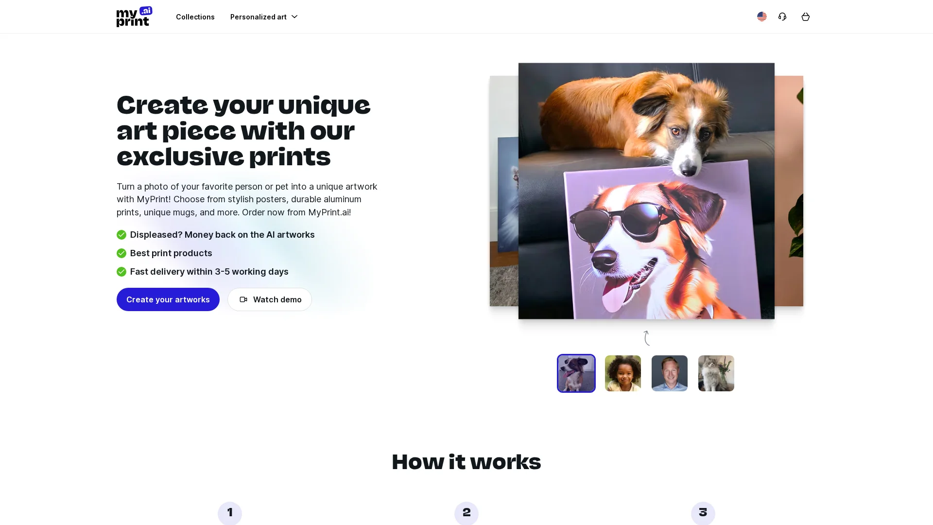 About Myprint Ai : MyPrint.ai is an AI-powered platform that generates AI artworks from your photos, allowing you to create unique and personalized designs. You can then turn these artworks into various print products.