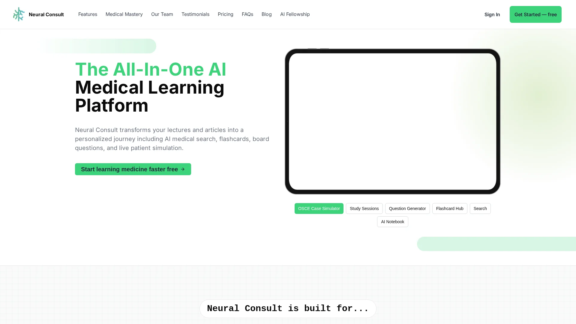 Neural Consult is a AI learning tool helping Medical Students study better