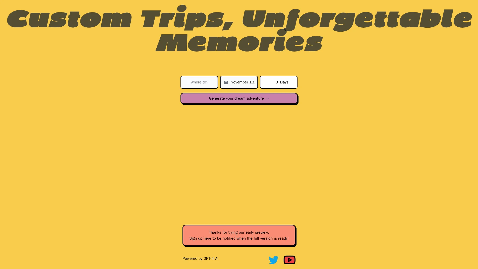 About Orkoi : Generate your personal travel plan in seconds with Orkoi AI Travel Plan Generator, an AI-powered tool for travel enthusiasts. Get expert recommendations for your dream trip with a personalized itinerary, including destinations, activities, and expenses.