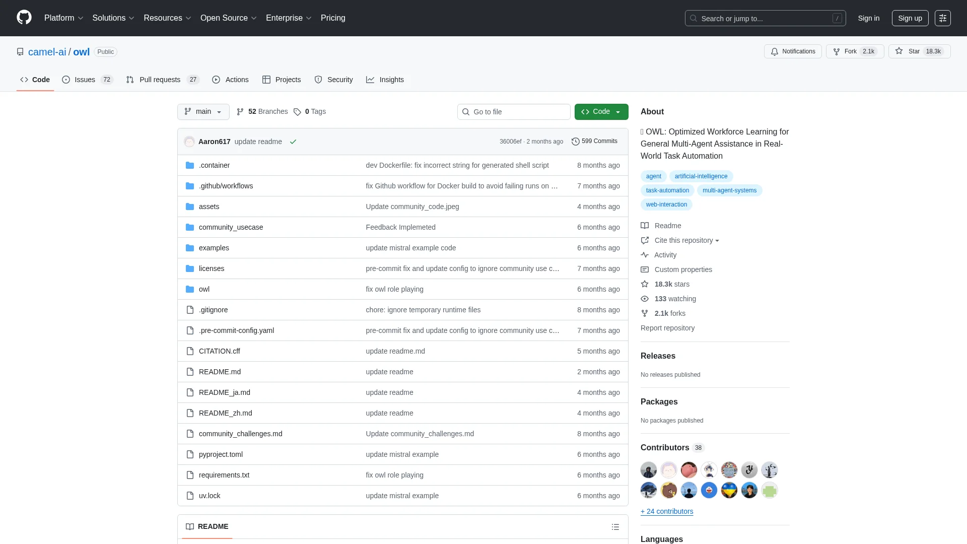 About Owl By Camel Ai : OWL is an AI system designed for optimized workforce learning and general multi-agent assistance in real-world task automation.