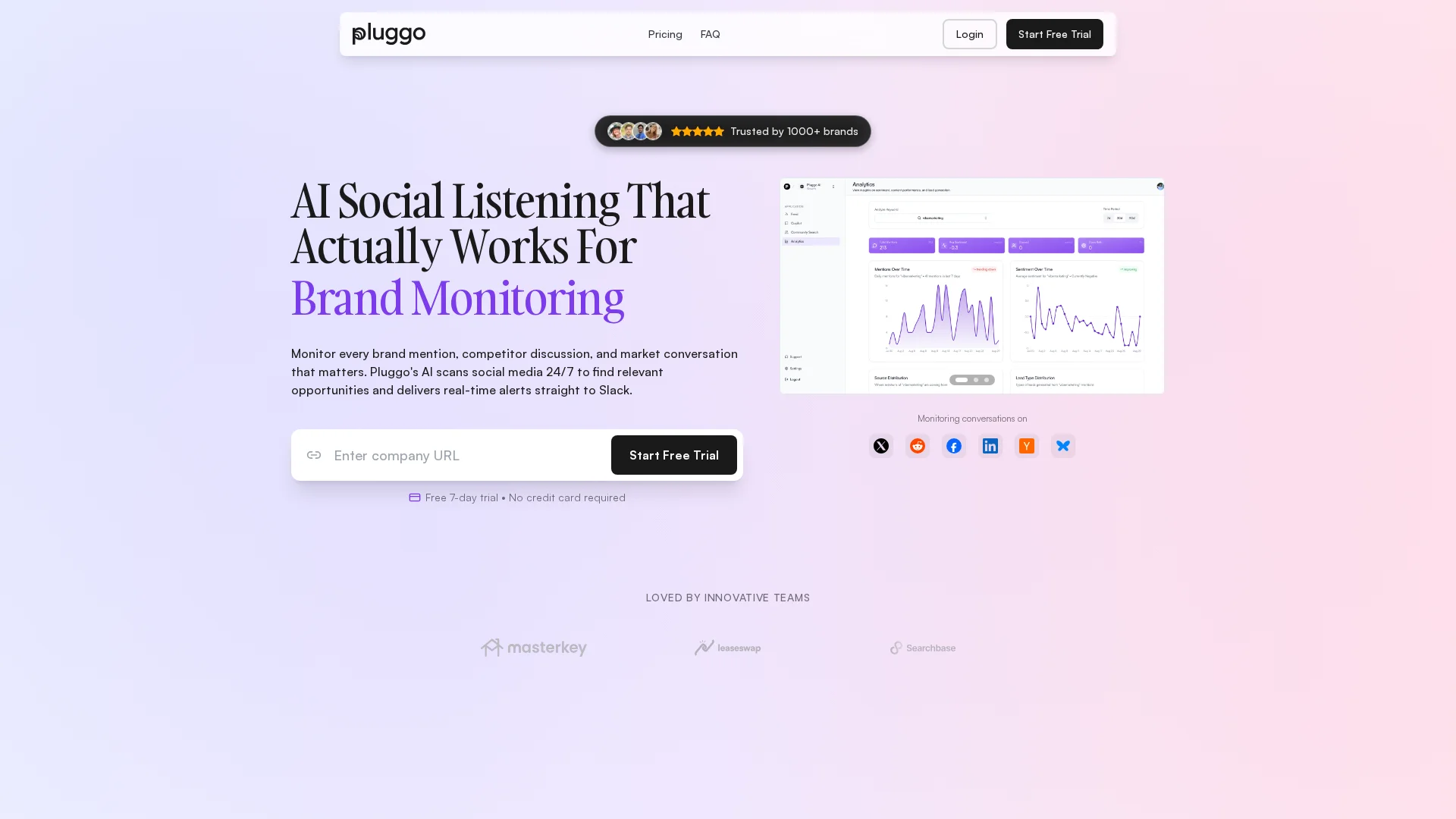 About Pluggo : Pluggo Pluggo is a social media monitoring tool designed for consumer brands. It helps track brand mentions, monitor social conversations, and discover leads using AI-powered insights. This tool transforms social listening into actionable business intelligence.