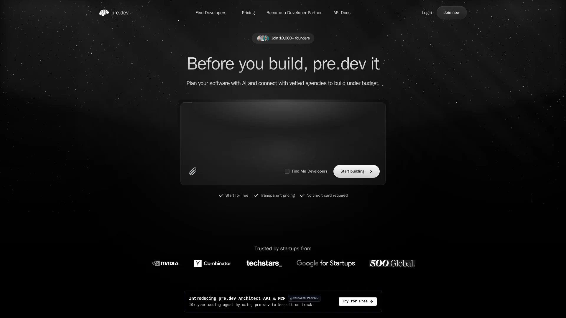 About Pre.Dev : Pre.Dev is an AI-powered software architect tool that helps plan and scale software development with leading developers.