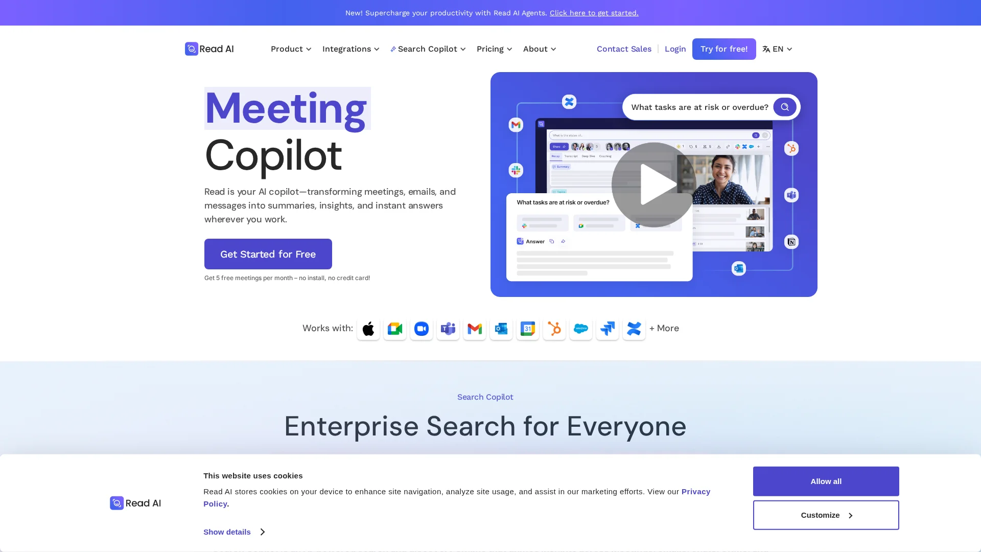 Read AI, the fastest growing AI meeting assistant, ever, delivers real-time transcription, smart summaries, and enables AI search and discovery across all your content including meeting, messages, emails, CRM, and documents.