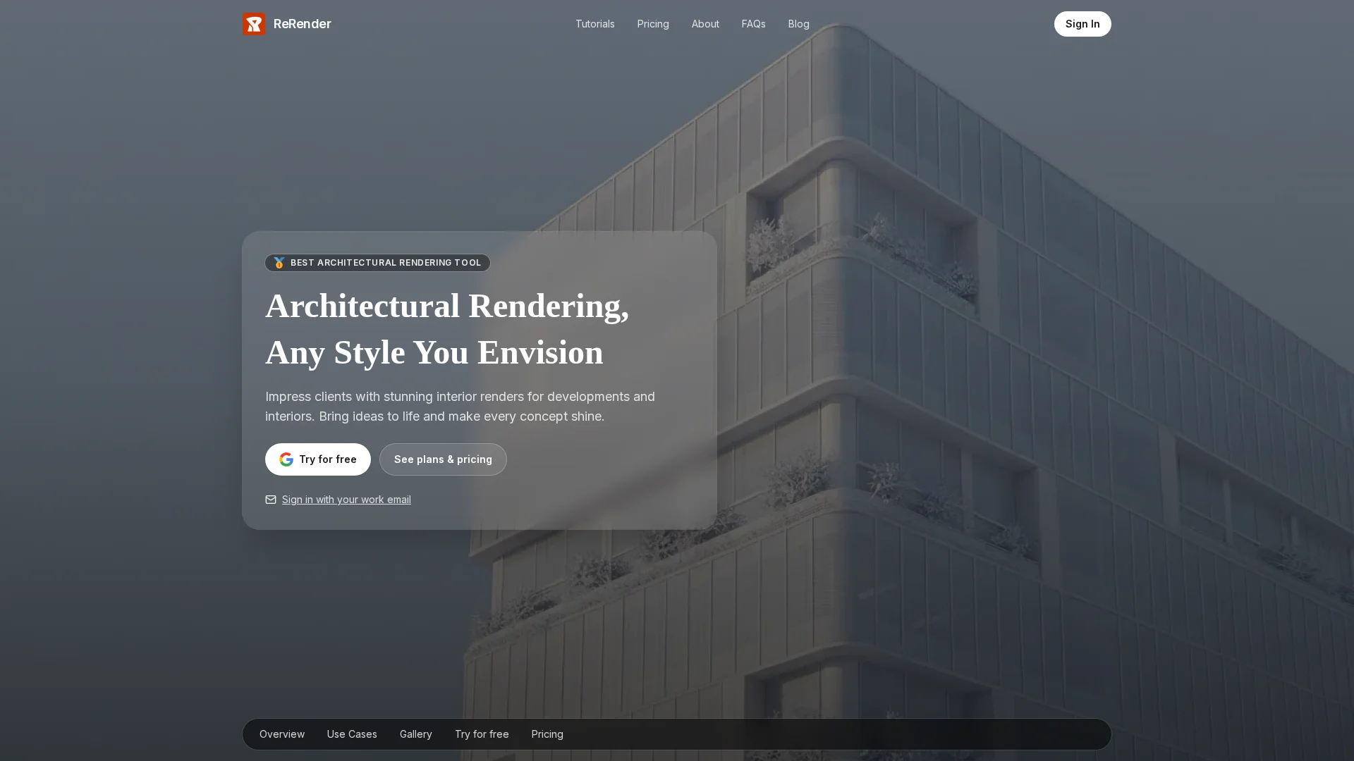 About Rerender Ai : ReRender AI is an AI-powered architectural renderer that enables users to generate photorealistic visuals in seconds from Revit, SketchUp, and Rhino. Ideal for client presentations and rapid design iterations.
