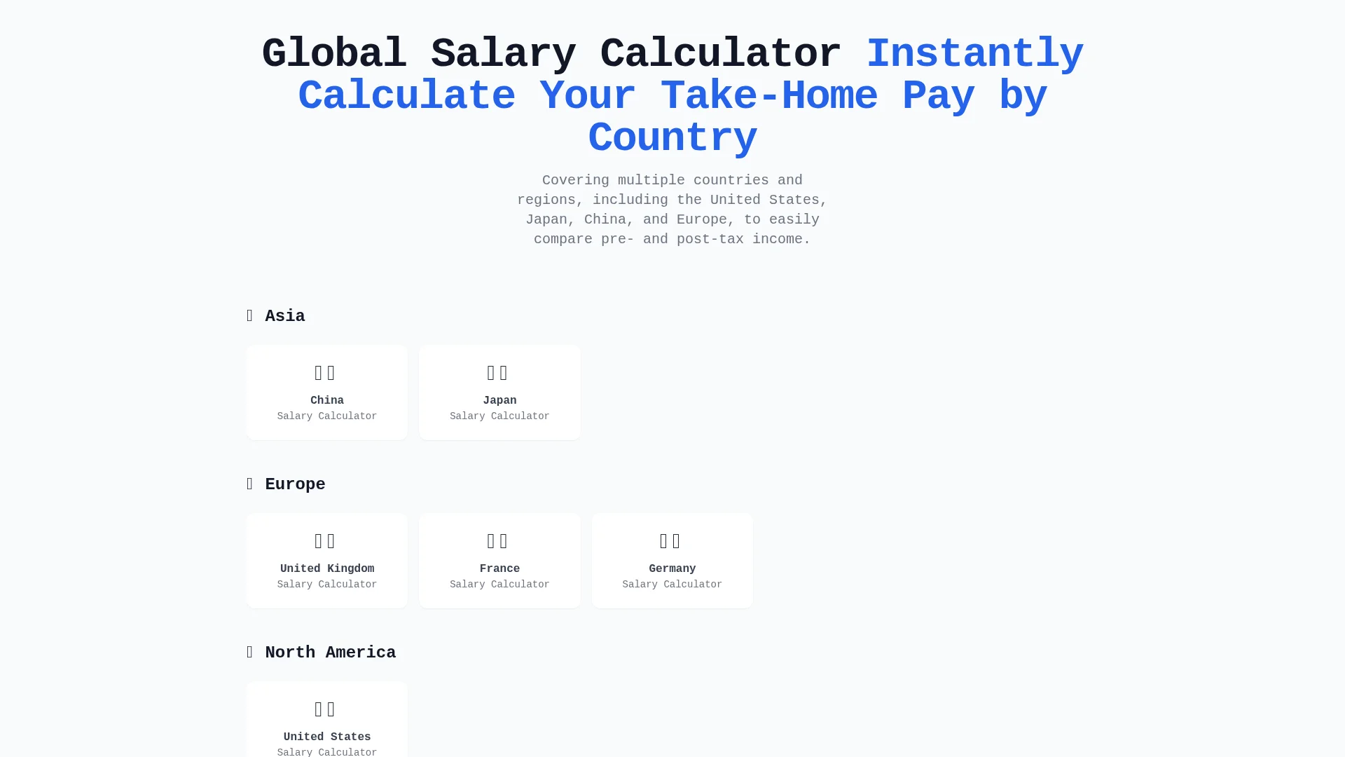 An AI-powered calculator to estimate your net salary throughout the world, easily understand tax deductions and take-home pay.