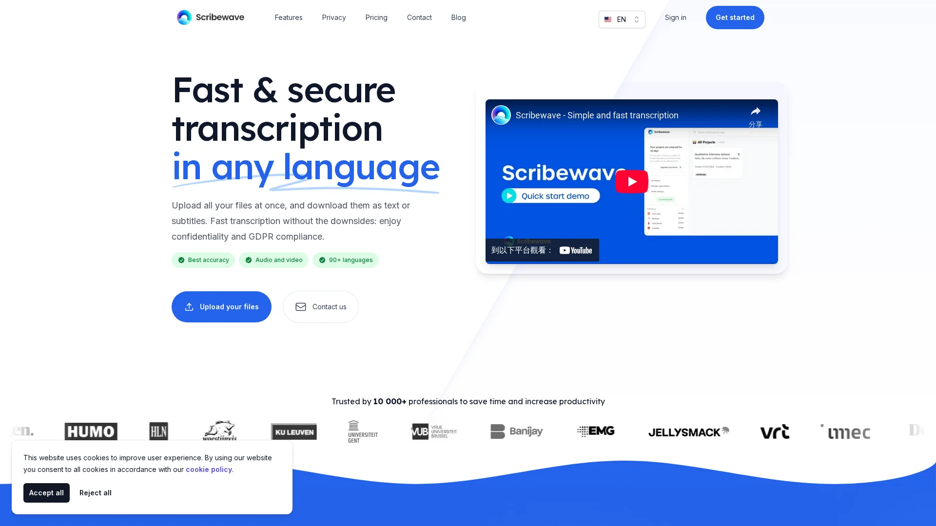 Scribewave is the most accurate online speech-to-text tool for all audio and video files. Subtitles, translations, and transcripts in 99 languages.