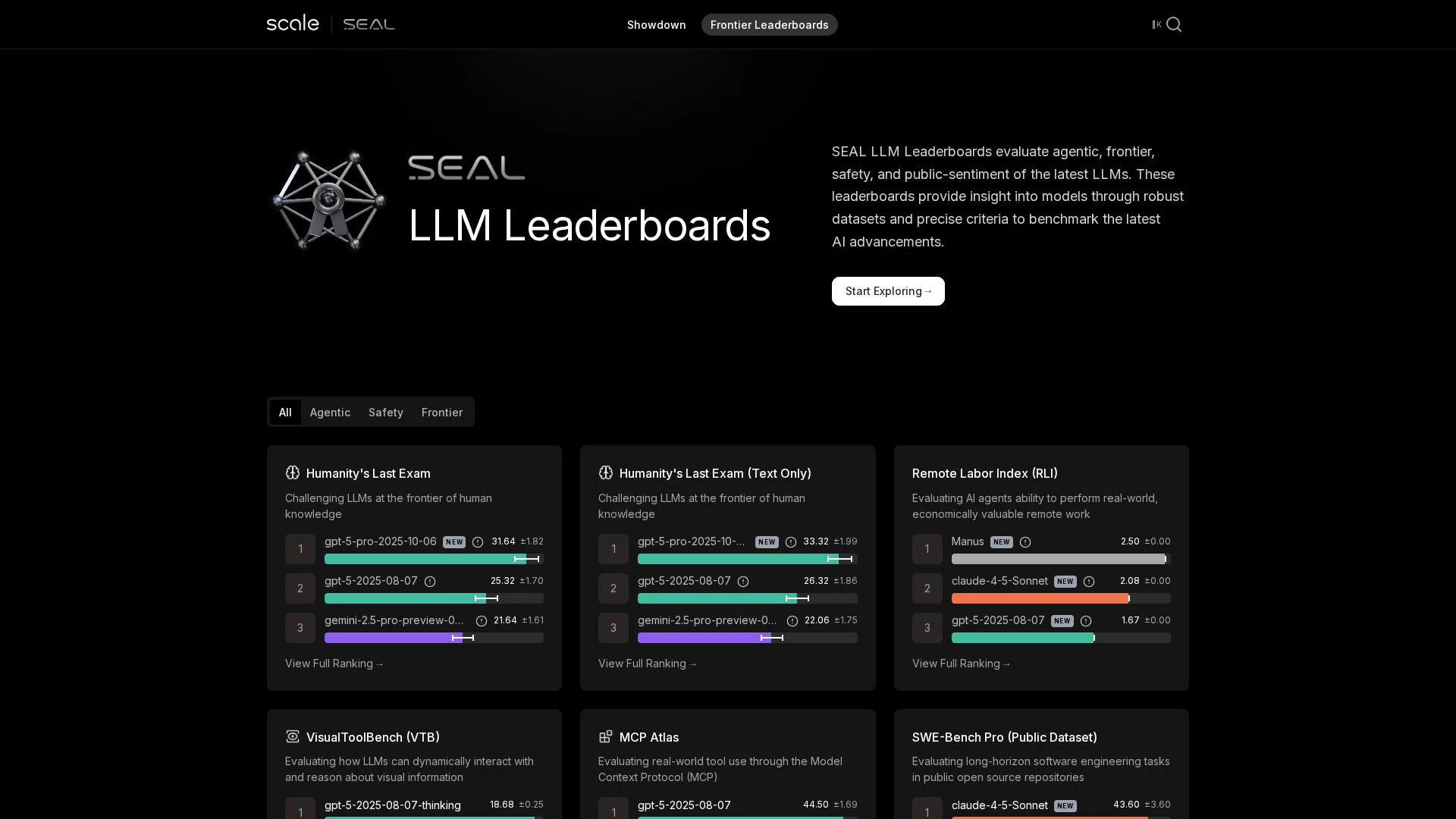 Explore the SEAL leaderboard with expert-driven LLM benchmarks and updated AI model leaderboards, ranking top models across coding, reasoning and more.