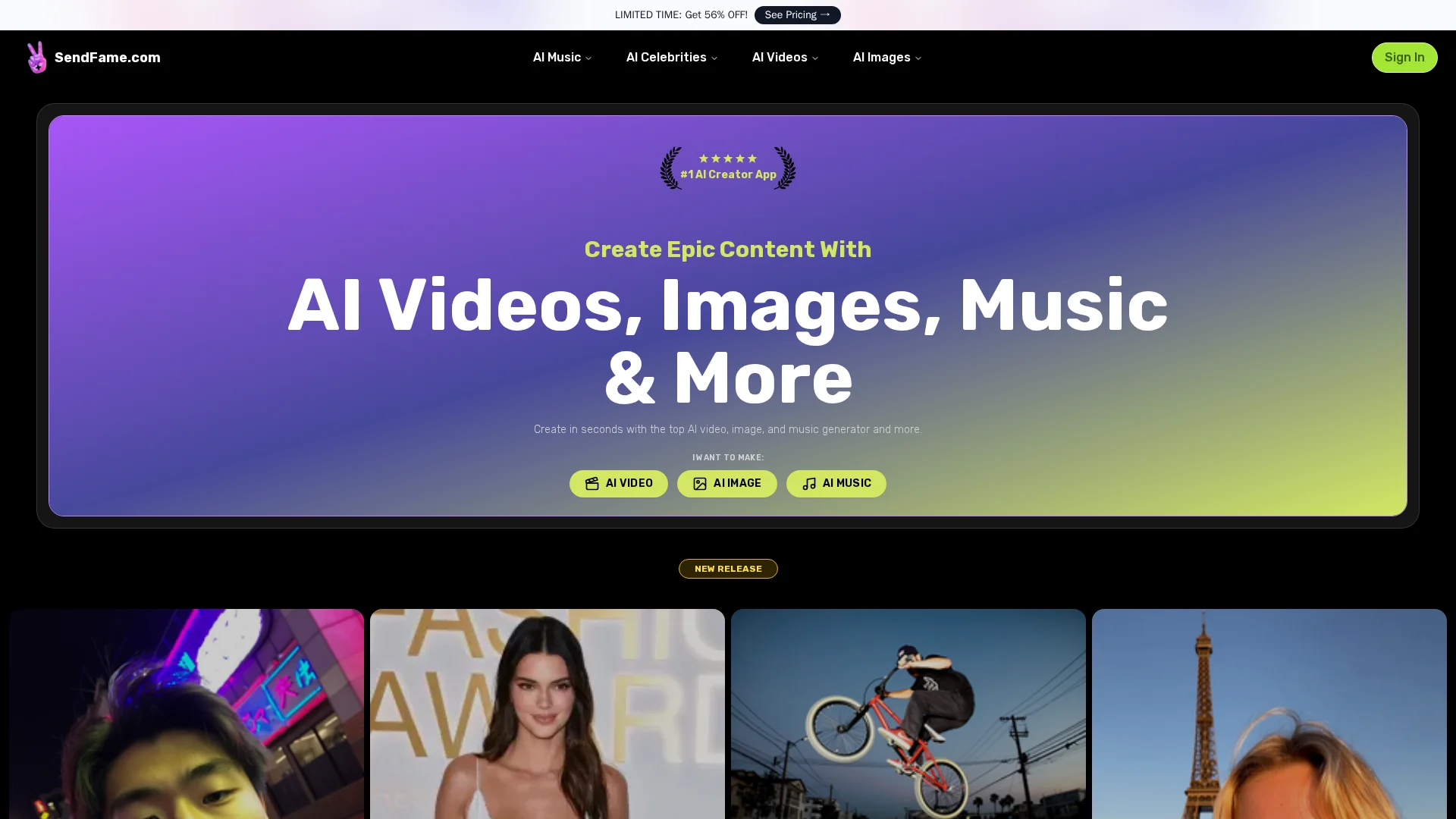 About Sendfame : Generate viral AI videos, images, and music with ease using Sendfame Create Epic. This tool empowers users to produce engaging content quickly and efficiently, making it perfect for content creators, marketers, and anyone looking to enhance their online presence.