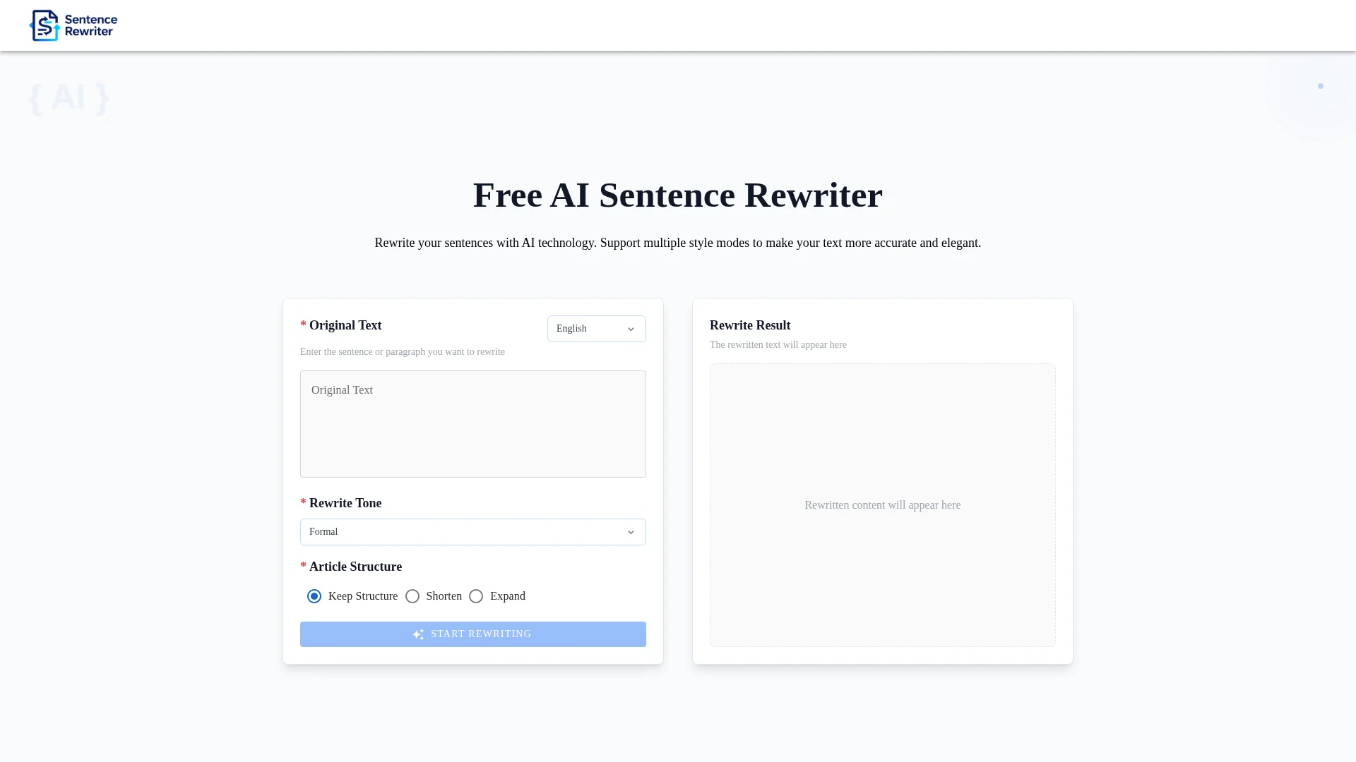 About Sentence Rewriter : A simple, free AI-powered sentence rewriter that can rewrite sentences in multiple styles for more accurate and elegant writing.