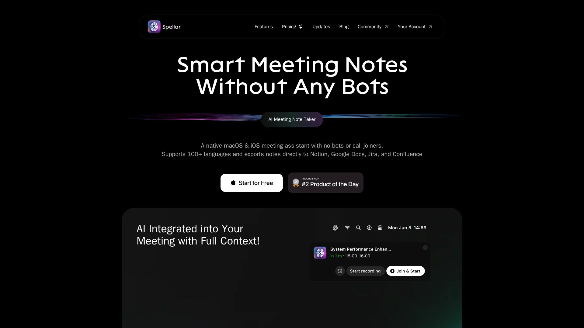 Spellar AI - Bot-free, native macOS & iOS meeting assistant, supporting 100+ languages with seamless export to Notion, Google Docs, Linear, Jira & Confluence