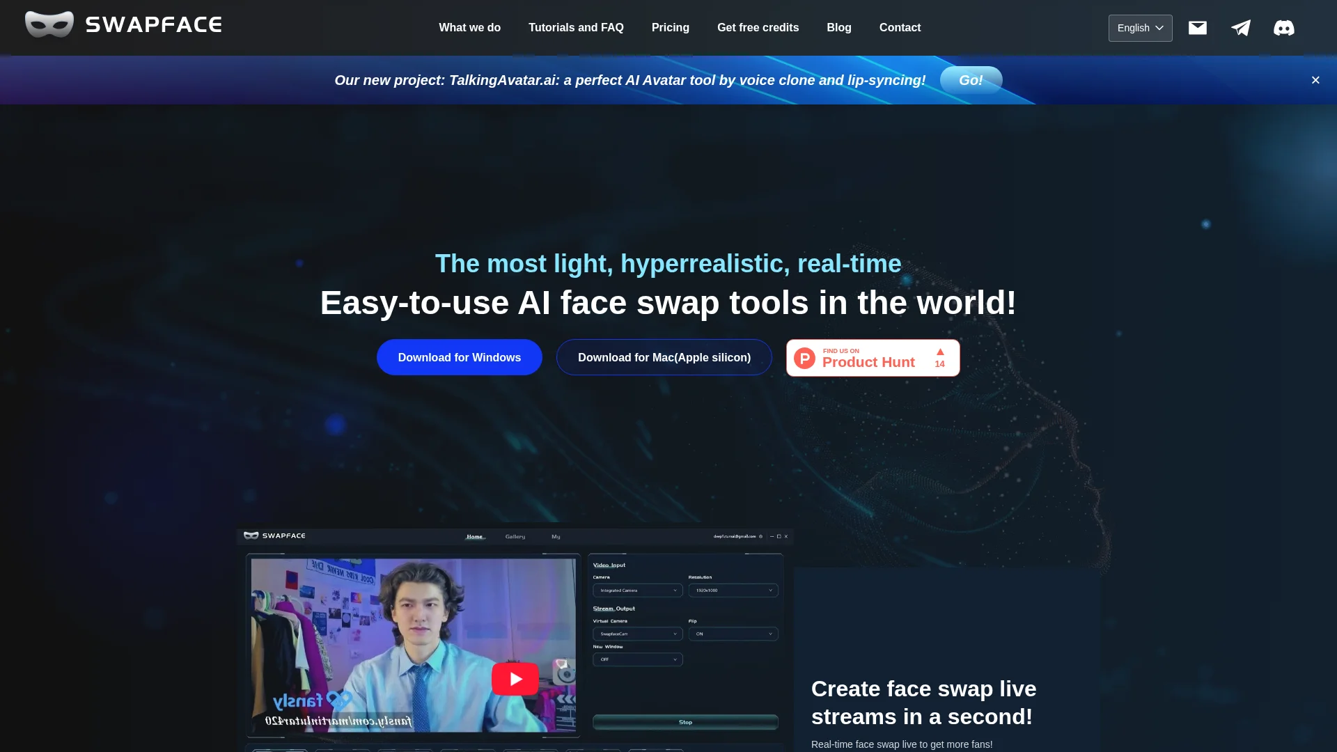 About Swapface : Swapface is a free AI face swap tool that enables users to create hilarious and hyperrealistic face swaps for videos and social media. Its fast and easy-to-use interface makes it suitable for content creators and social media enthusiasts.