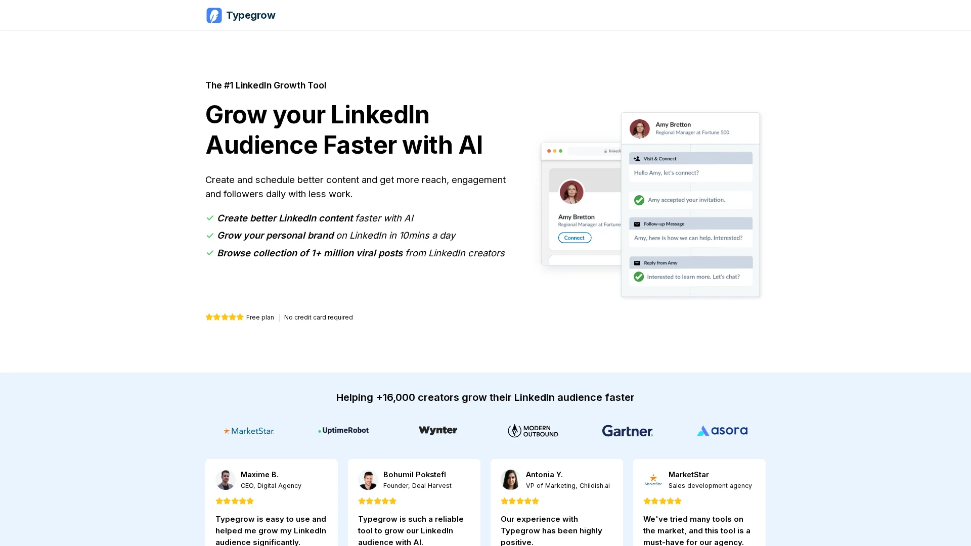 Typegrow is the best AI tool for LinkedIn that helps you write, generate, and publish better content for LinkedIn and grow your audience faster.