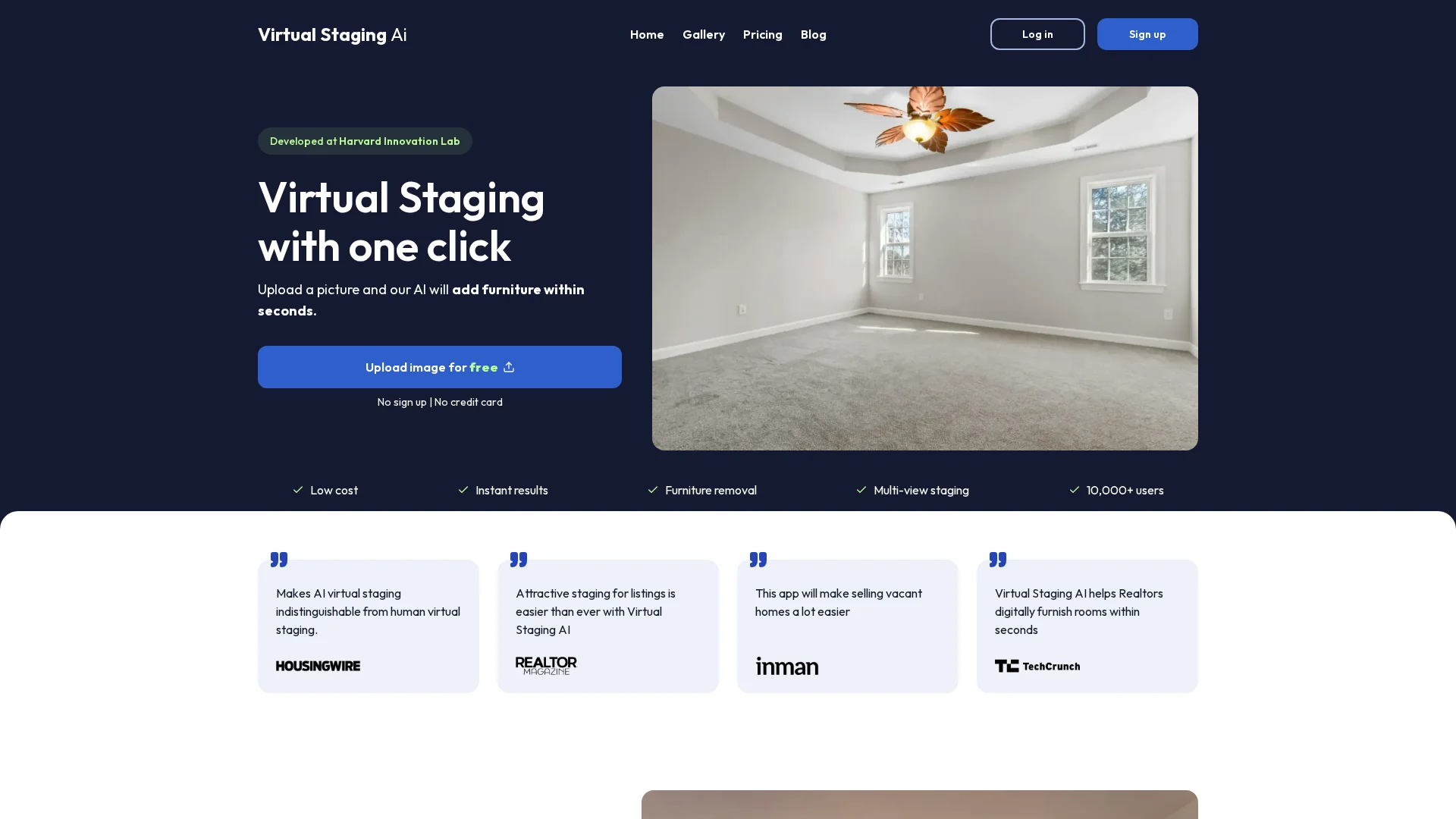Virtual Staging by AI for only $1 per image. Try for free and get instant results. Highly realistic furnishings. Developed at Harvard Innovation Lab.