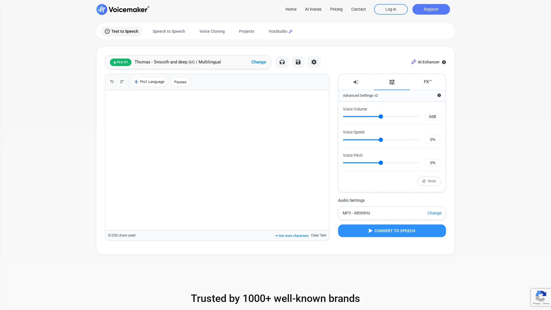 Convert text into ultra-realistic speech with Voicemaker, featuring 1,000+ AI voices in 130 languages. Download TTS audio files in MP3 & WAV formats perfect for YouTube Shorts, videos, presentations, and more!
