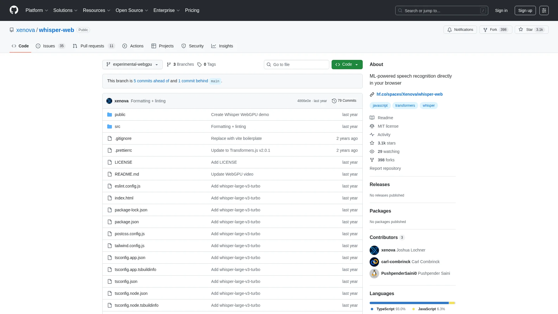 ML-powered speech recognition directly in your browser - GitHub - xenova/whisper-web at experimental-webgpu