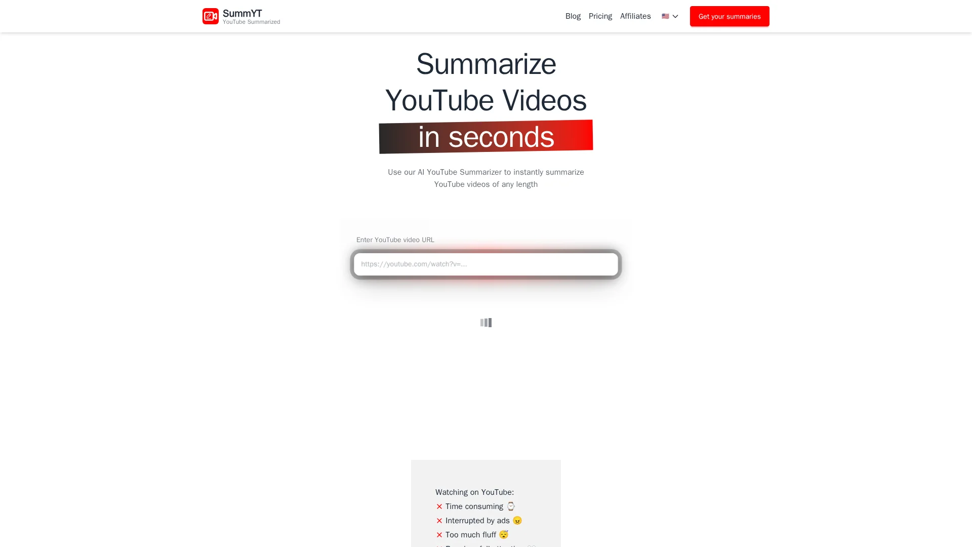 Get accurate summaries instantly with our AI YouTube Video Summarizer. Enter your YouTube link, click summarize and enjoy your YouTube Summary.