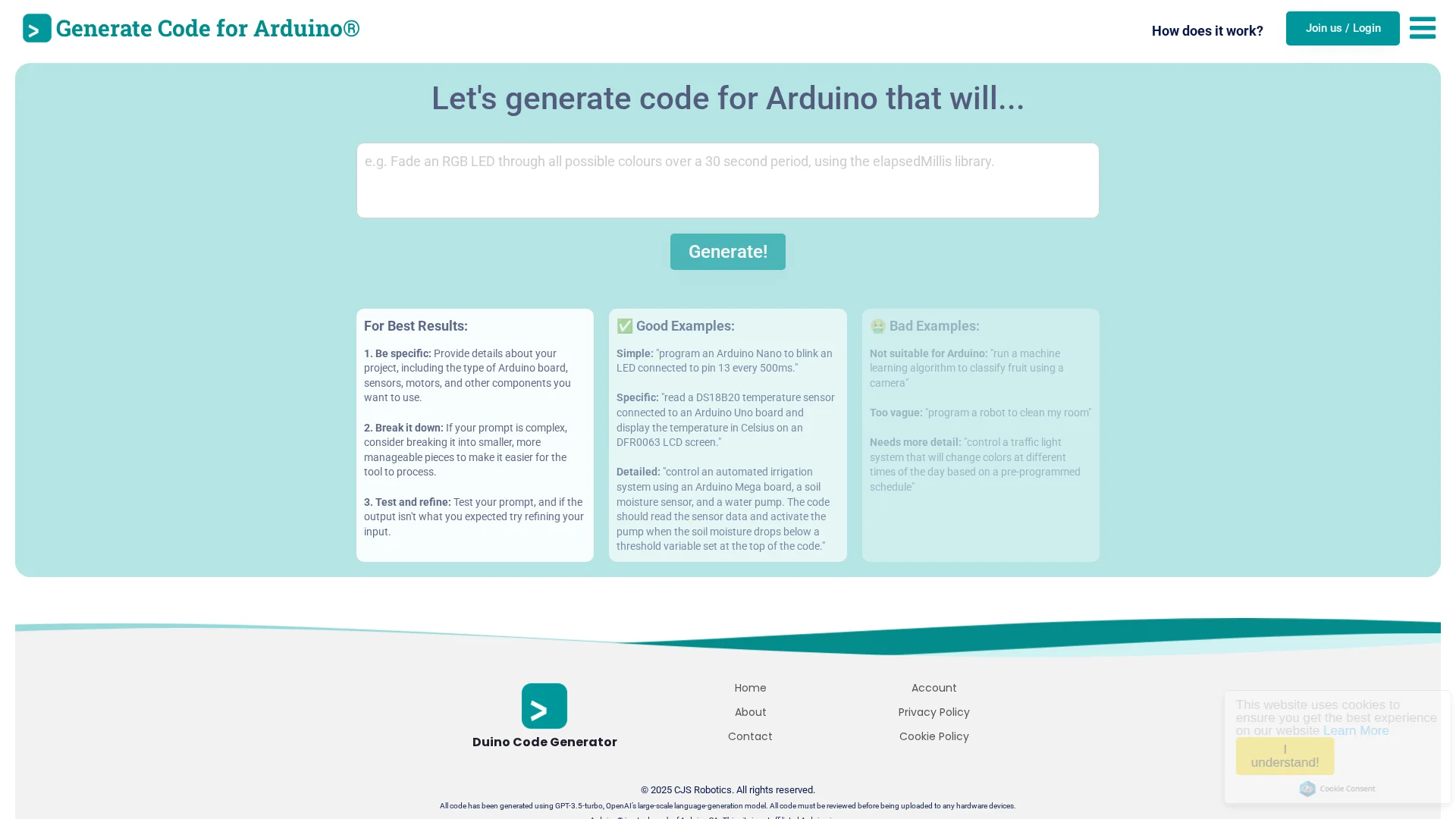 Automatically generate code for any Arduino compatible board with a single click. Let AI do the hard work so you can spend more time tinkering!