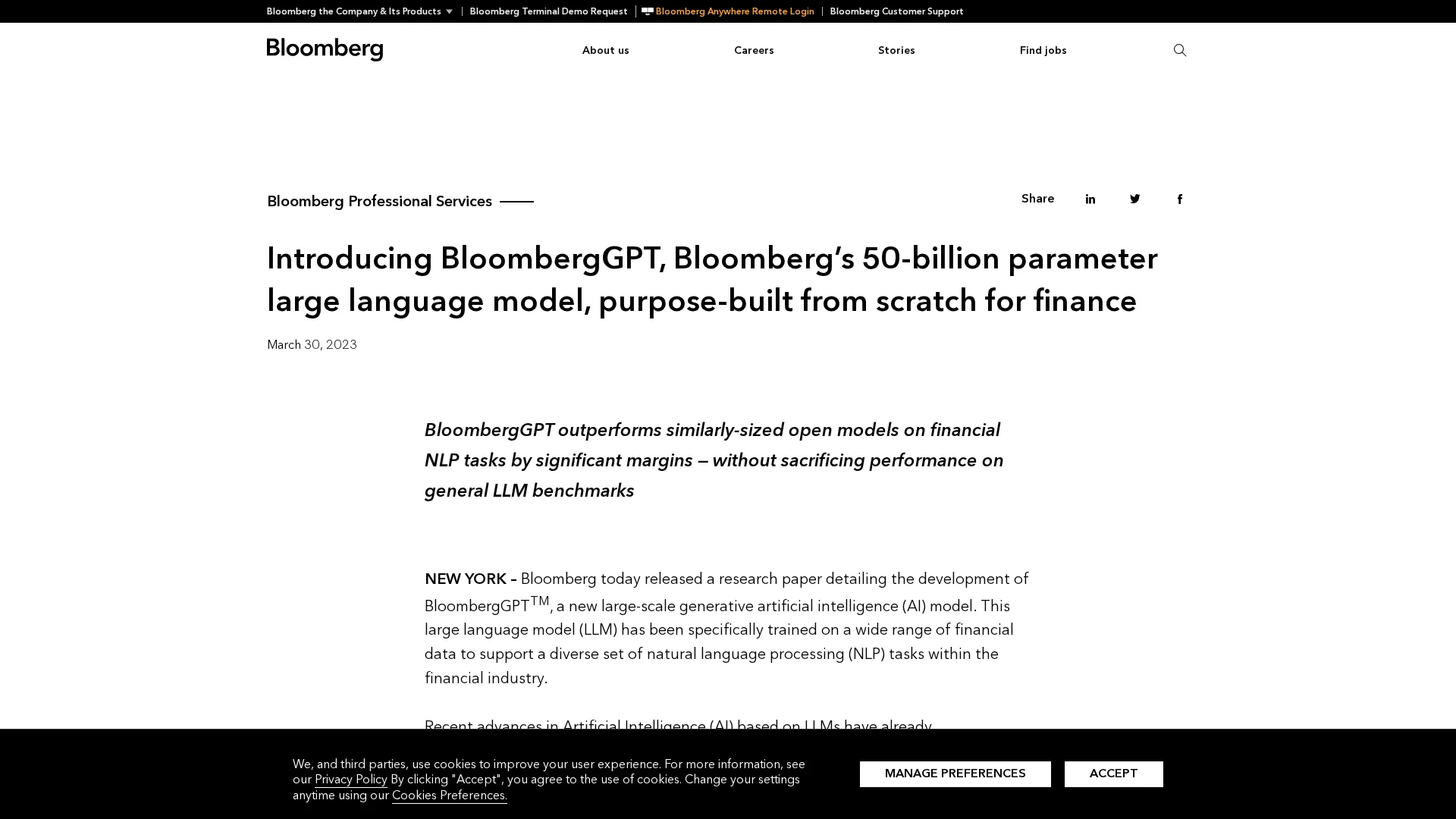 About Bloomberggpt : BloombergGPT is a 50-billion parameter large language model, purpose-built from scratch for finance.