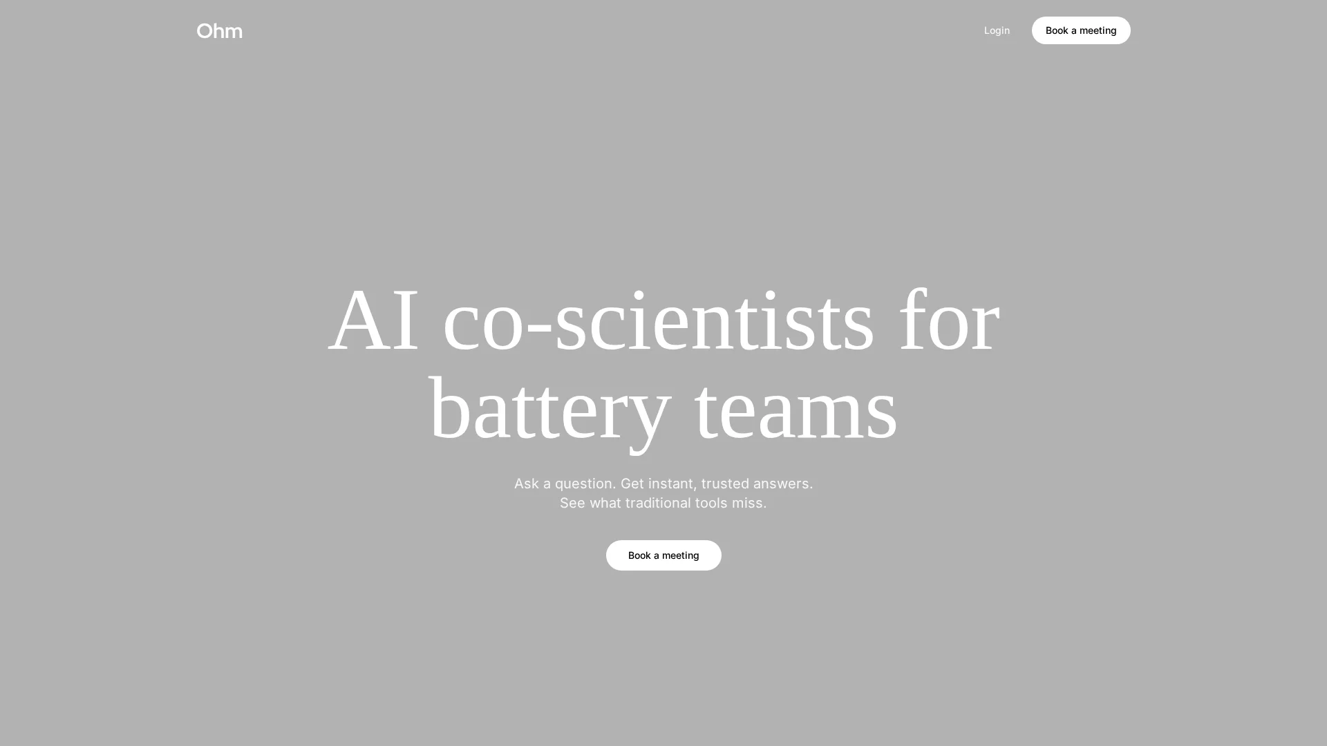 Ohm - AI co-scientists for battery teams. Ask a question. Get instant, trusted answers. See what traditional tools miss.